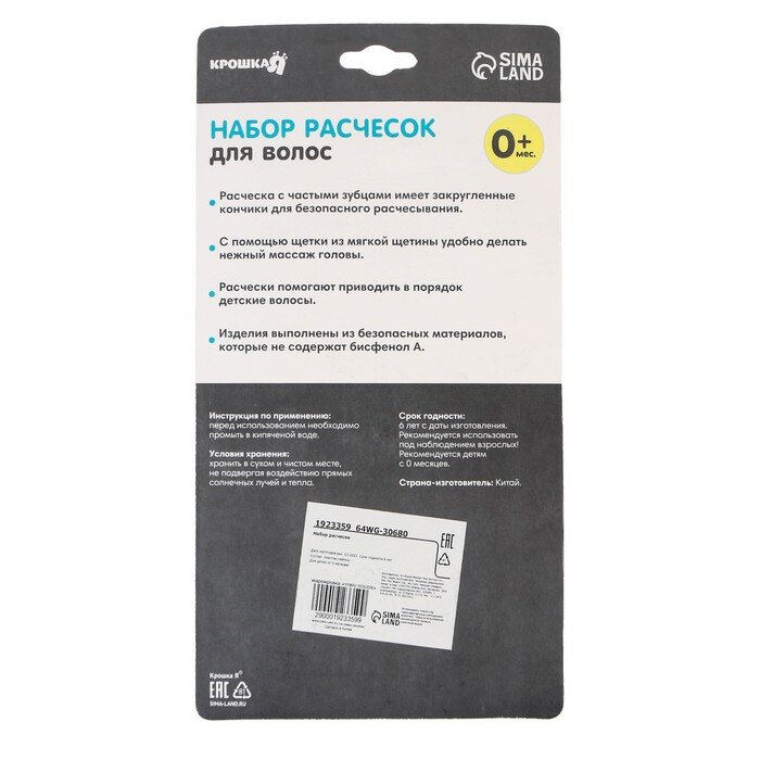 Расчёска детская + массажная щётка для волос, от 0 мес, цвета микс, 2315247
