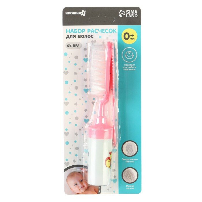 Набор расчесок с погремушкой «Малыш», 2 шт., цвет розовый, рисунок микс интересное: