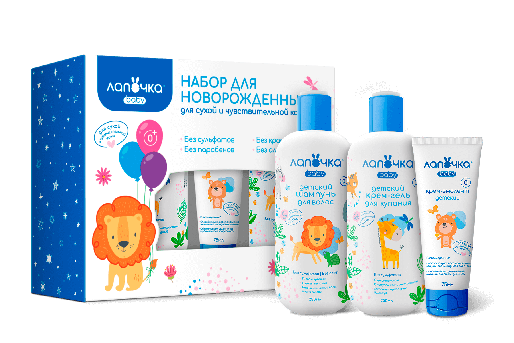 Набор для новорожденных лапочка для сухой и чувствительной кожи 250+250+75 мл интересное: