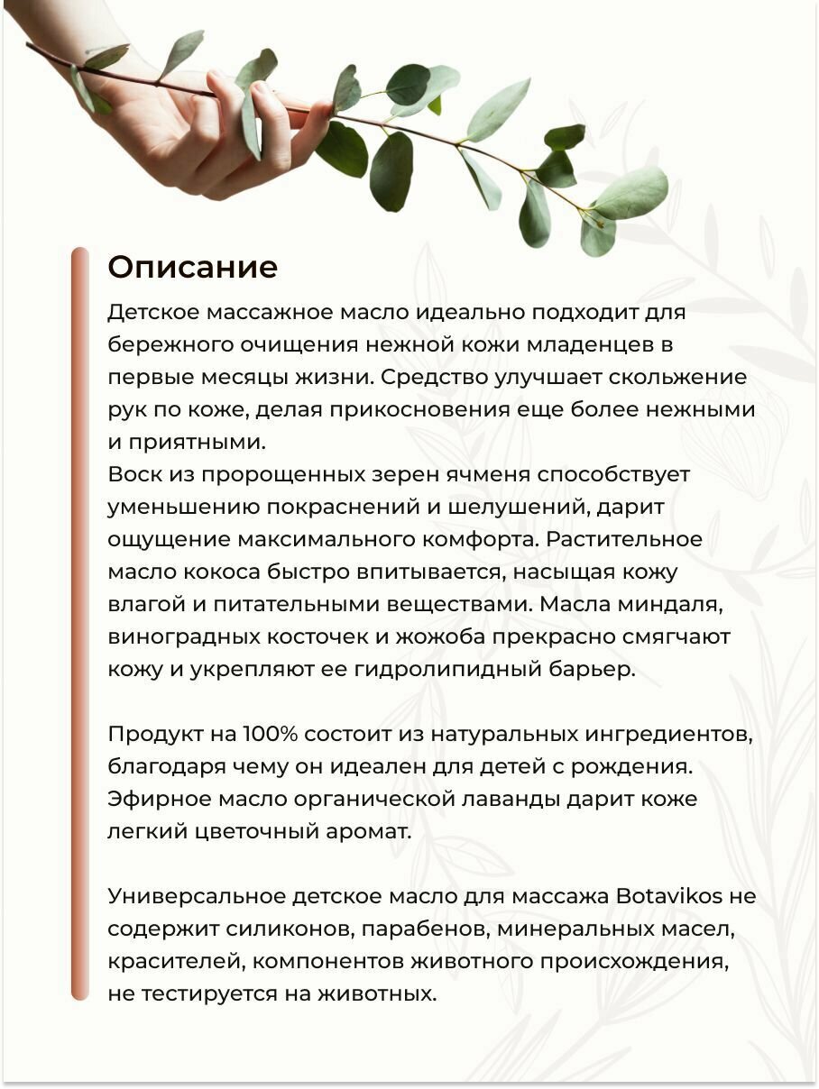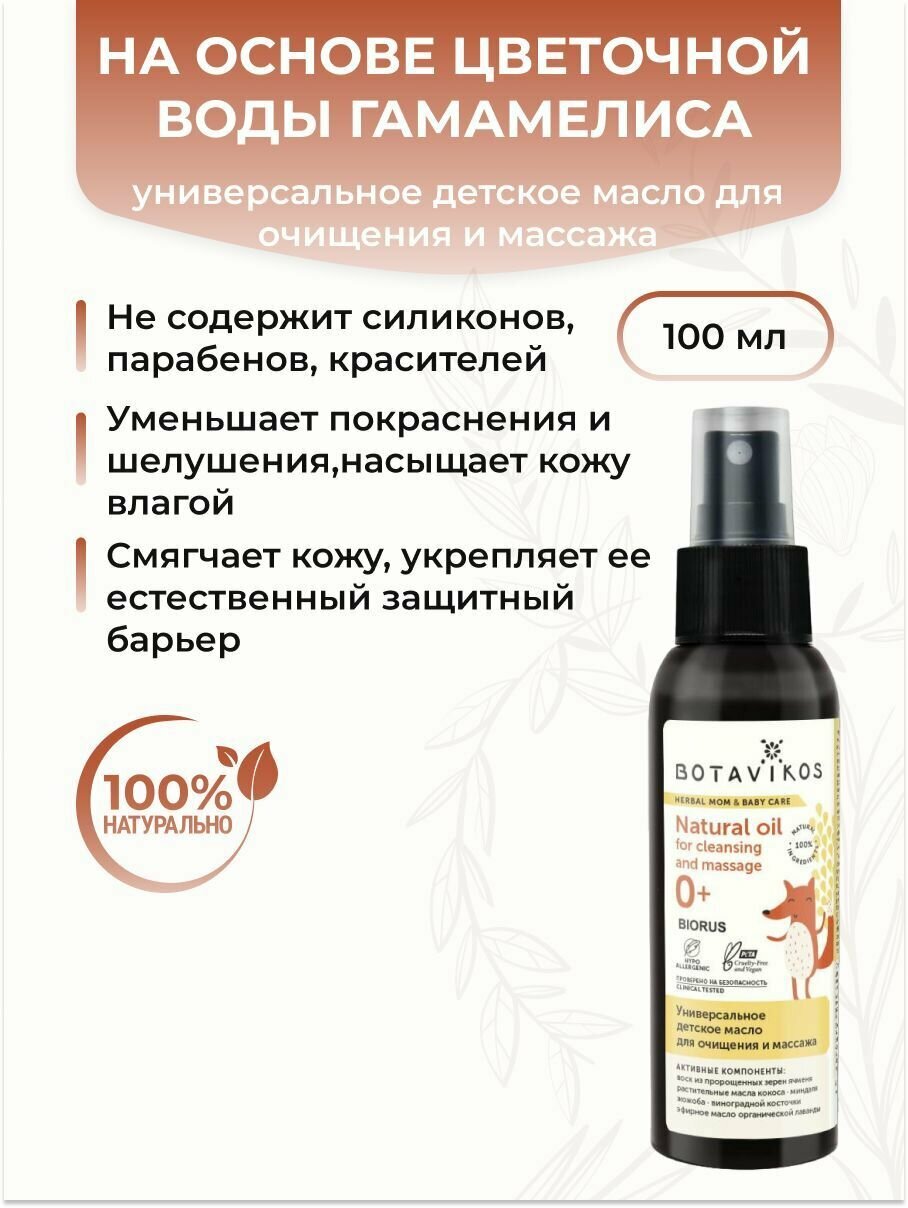 Универсальное детское масло для очищения и массажа на основе цветочной воды гамаммелиса, 100 мл, BOTAVIKOS интересное: