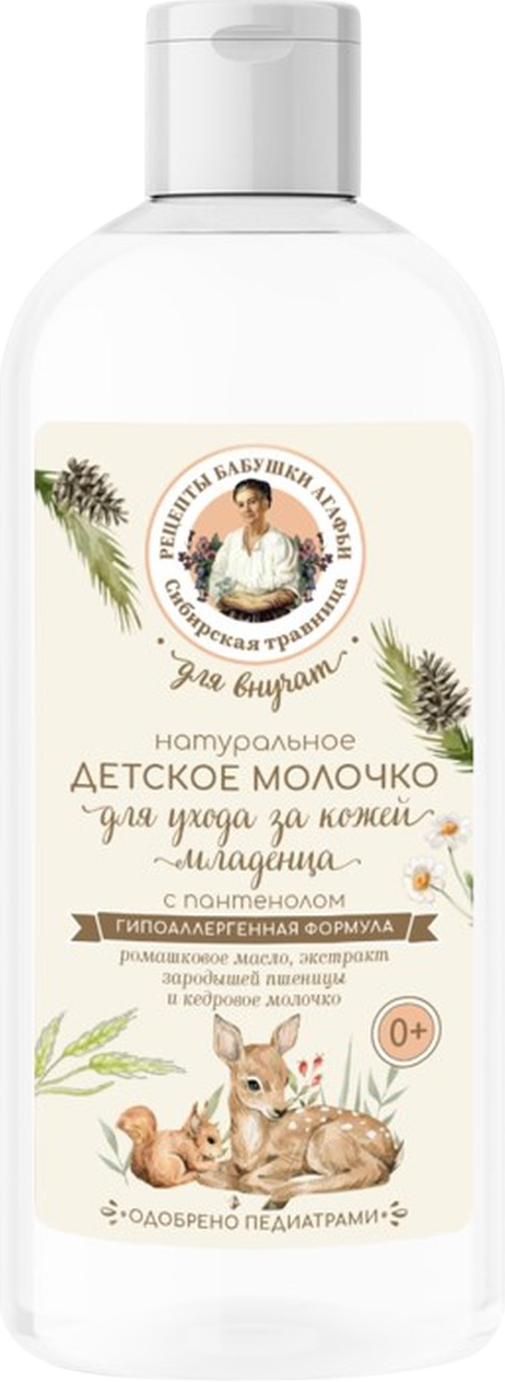 Рецепты бабушки Агафьи Молочко Для Внучат с пантенолом для ухода за кожей младенца Натуральное, 0+, 250 мл