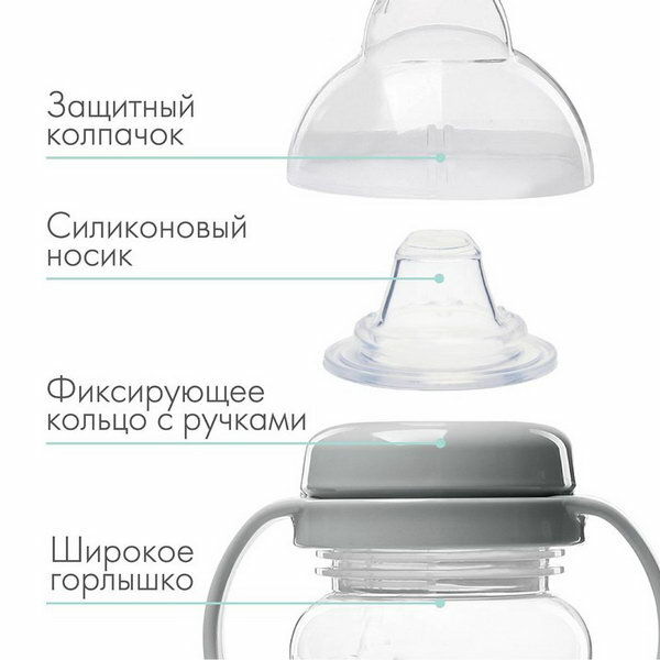 Поильник - непроливайка детский с мягким носиком, 270 мл, с ручками, цвет серый интересное: