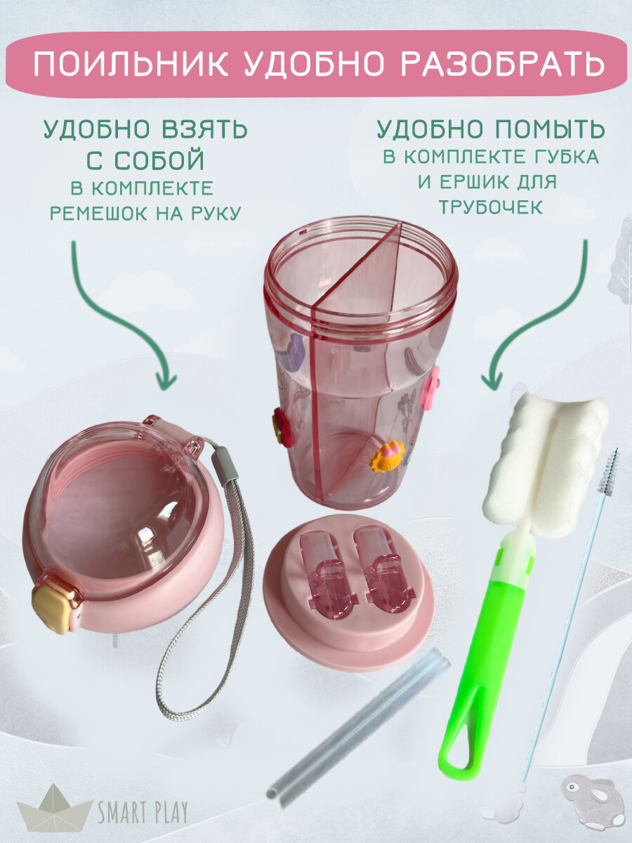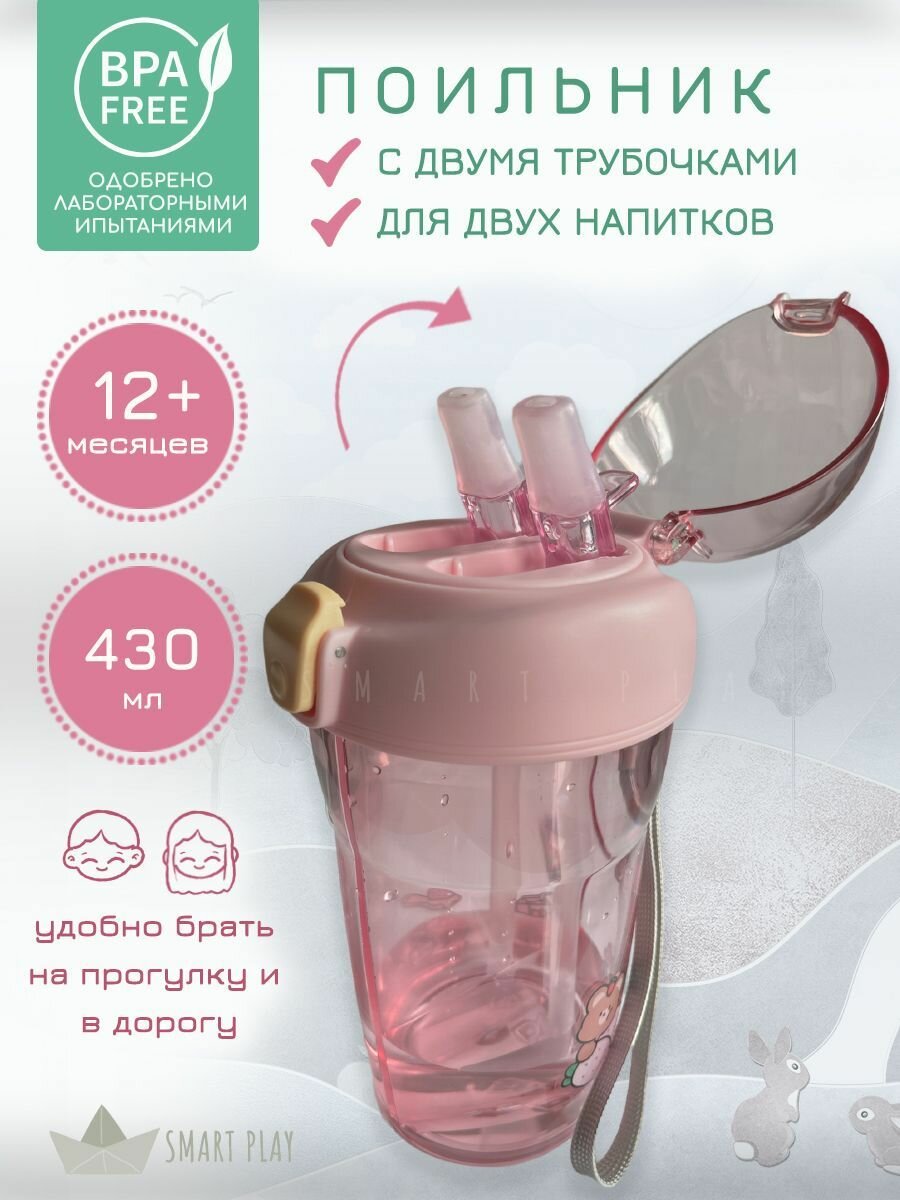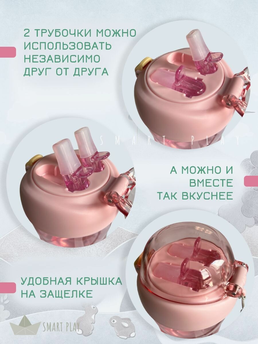 Поильник-непроливайка детский с двумя трубочками 430мл интересное: