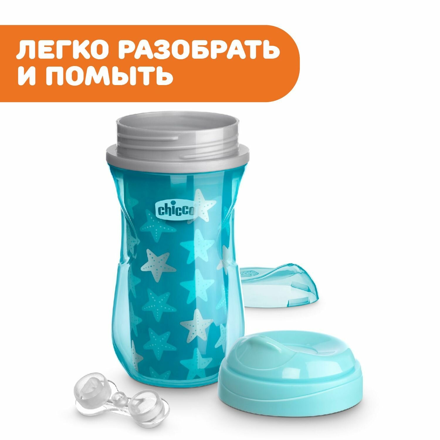 Поильник Chicco Active Cup 14м+ голубой интересное: