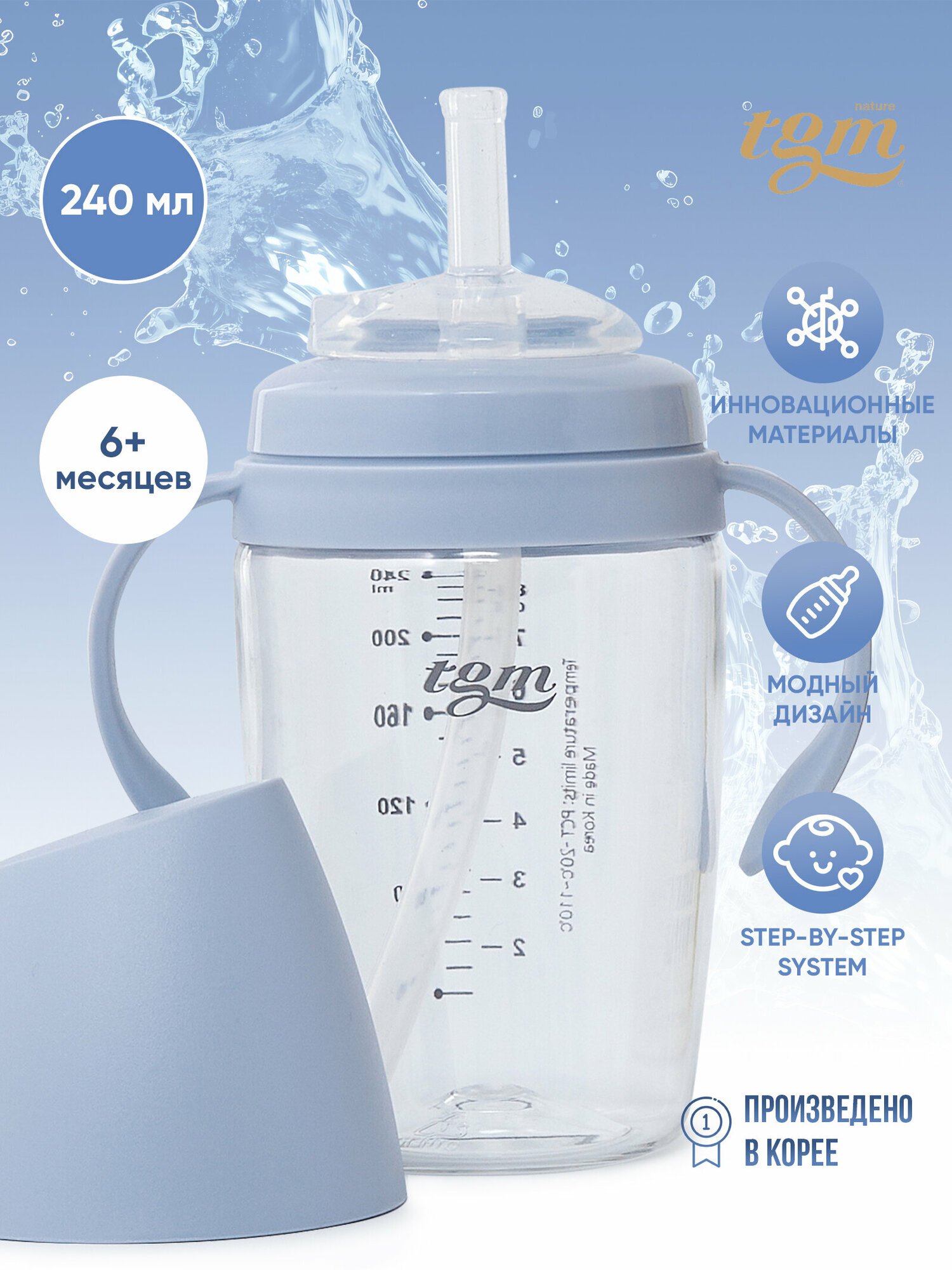 Поильник детский TGM Rice Grain Tritan 240 мл, cotton blue интересное: