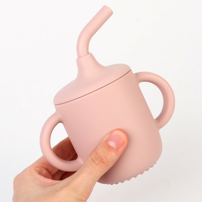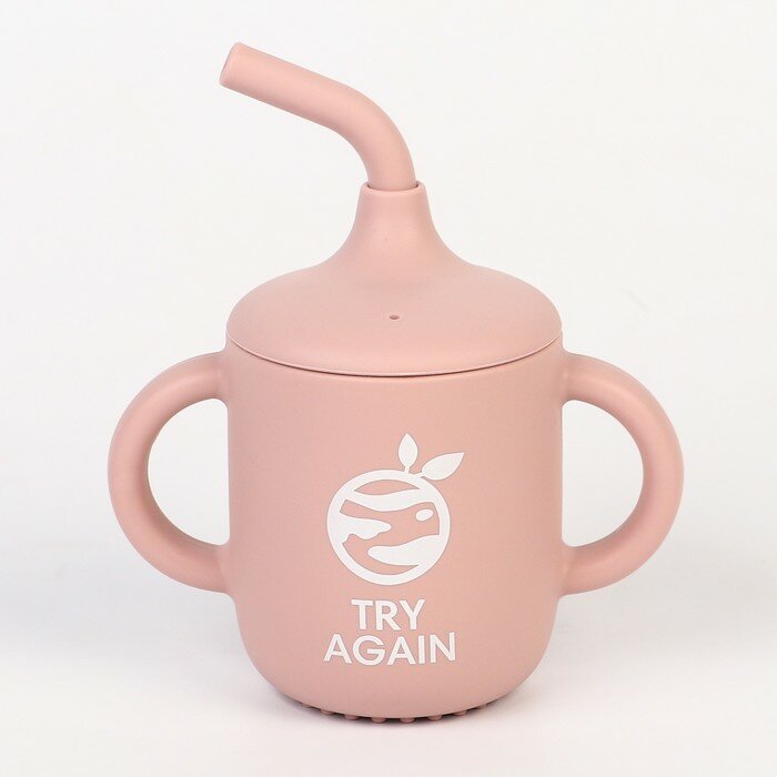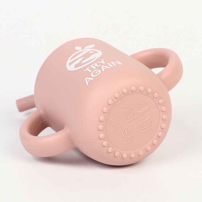 Купить Поильник с трубочкой детский силиконовый «Try again», 200 мл., с ручками, цвет розовый