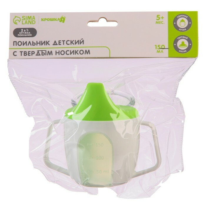 Купить Поильник - чашечка 2 в 1 детский тренировочный, твердый носик, 150 мл., с ручками, цвет зеленый
