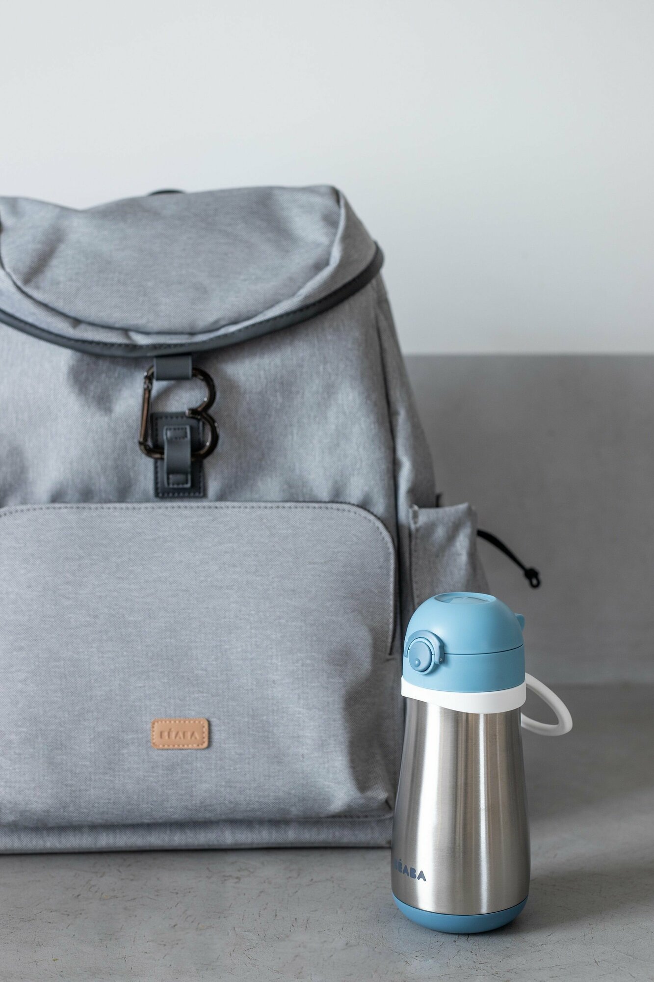 Поильник термос детский BEABA с крышкой, адаптированным носиком, съемной ручкой, термос детский для воды 350 мл., серый