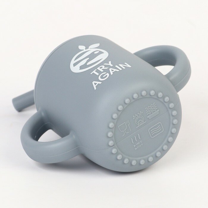 Купить Поильник с трубочкой детский силиконовый «Try again», 200 мл., с ручками, цвет серый