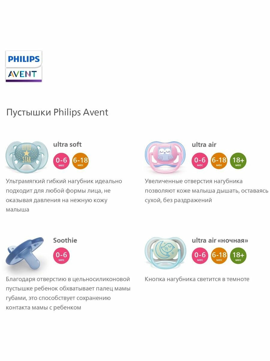 | Комплектация | пустышка Avent Ultra Soft 2 шт., контейнер для стерилизации |