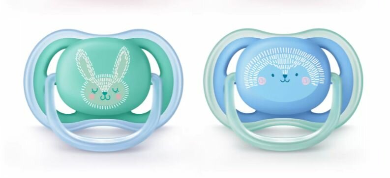 Купить Силиконовые пустышки Philips Avent SCF344/23 ultra air 2 шт, с широкими воздушными отверстиями, контейнером для стерилизации, синий/зеленый
