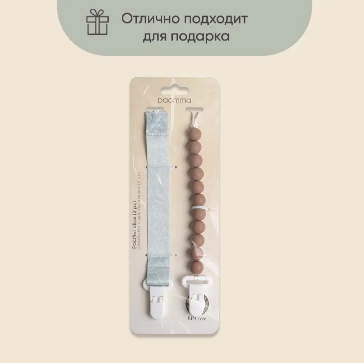 Набор держателей для пустышки Paomma sage / taupe, 2 шт. интересное: