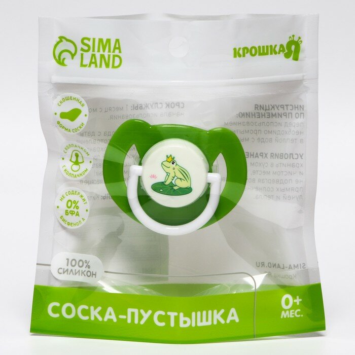 Соска - пустышка ортодонтическая, силикон, +6 мес., с колпачком «Лягушка», цвет зелёный интересное: