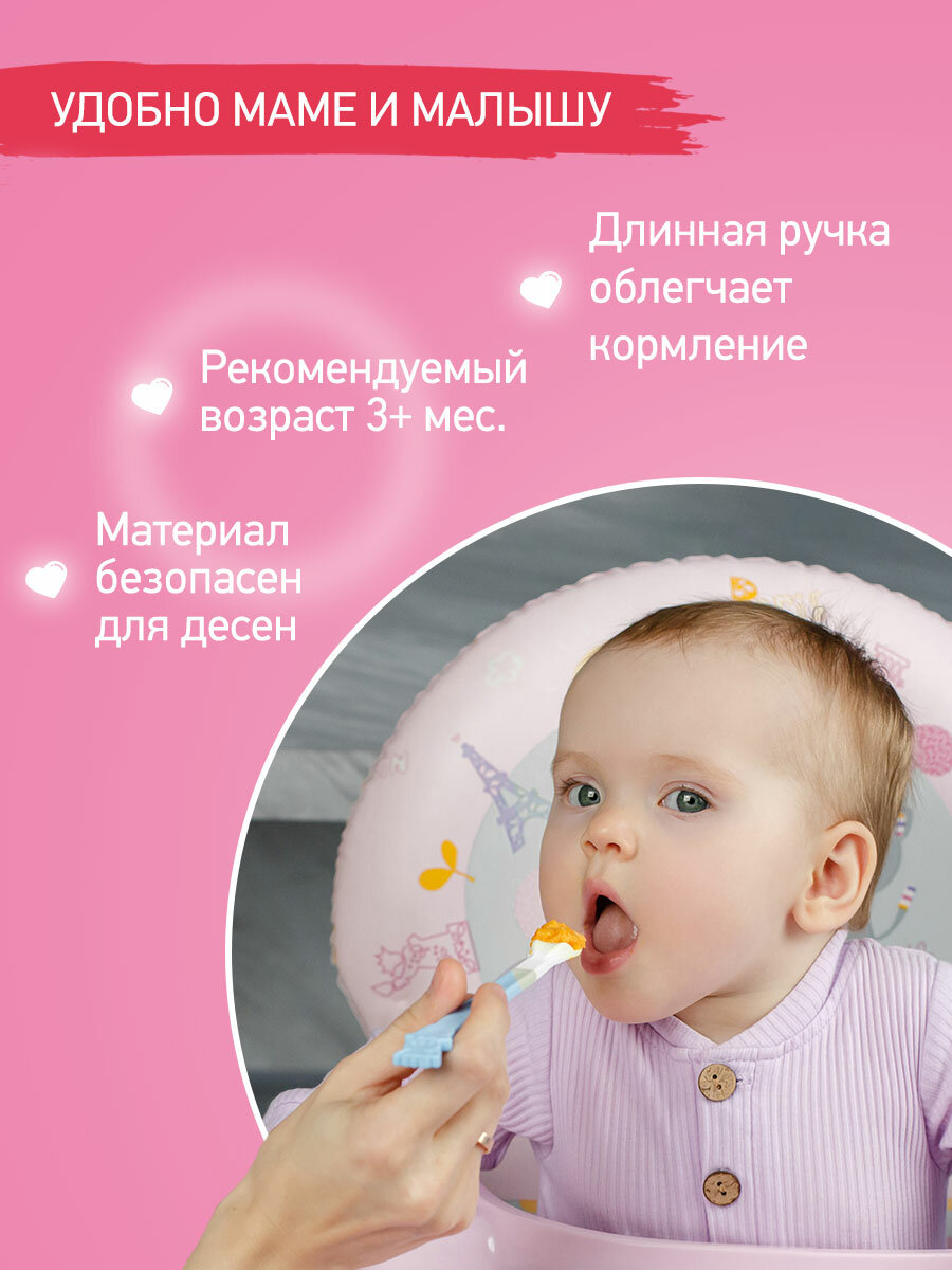 Ложка детская для кормления силиконовая, от 5 мес., цвет розовый