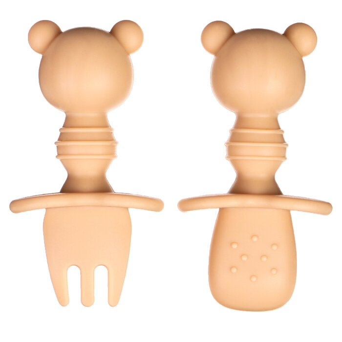 Купить Набор детских столовых приборов "Медвежата", вилка, ложка, цвет бежевый