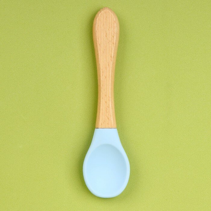 Купить Ложка детская для кормления (силикон, бамбук), цвет голубой
