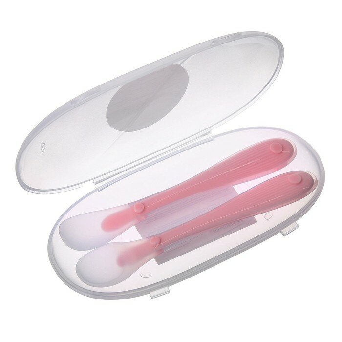 Набор силиконовых ложек для кормления, 2 шт., в контейнере, цвет розовый интересное: