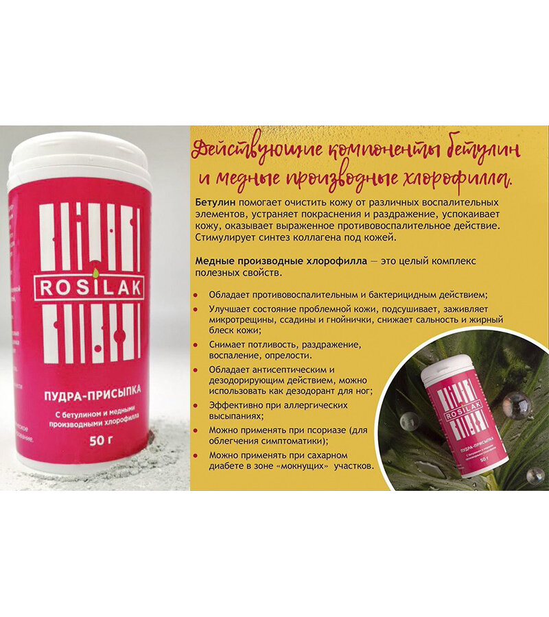 Rosilak, набор №19 пудра-присыпка с экстрактом пихты и перуанским бальзамом с бетулином (2 шт по 50) интересное: