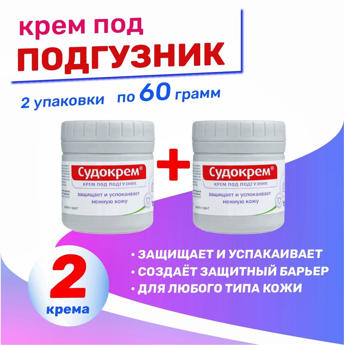 Купить Судокрем Крем под подгузник, комплект из 2 уп по 60 гр.