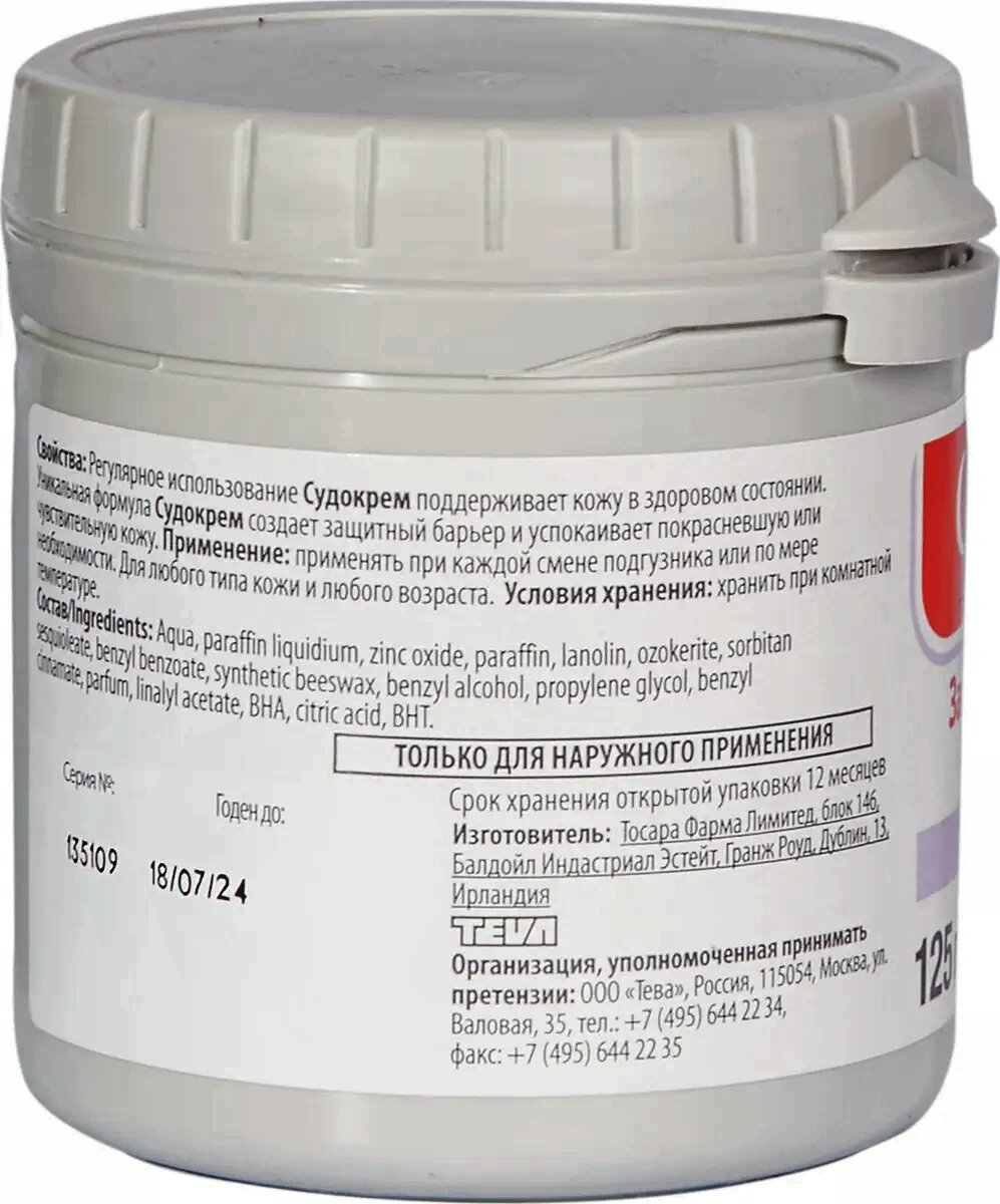 Судокрем Крем под подгузник, 2 упаковки по 125 гр, комплект из 2 банок интересное: