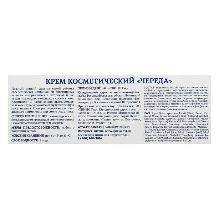 Крем детский 911 "911" Череда под подгузник от опрелостей, 150 мл (9926) интересное: