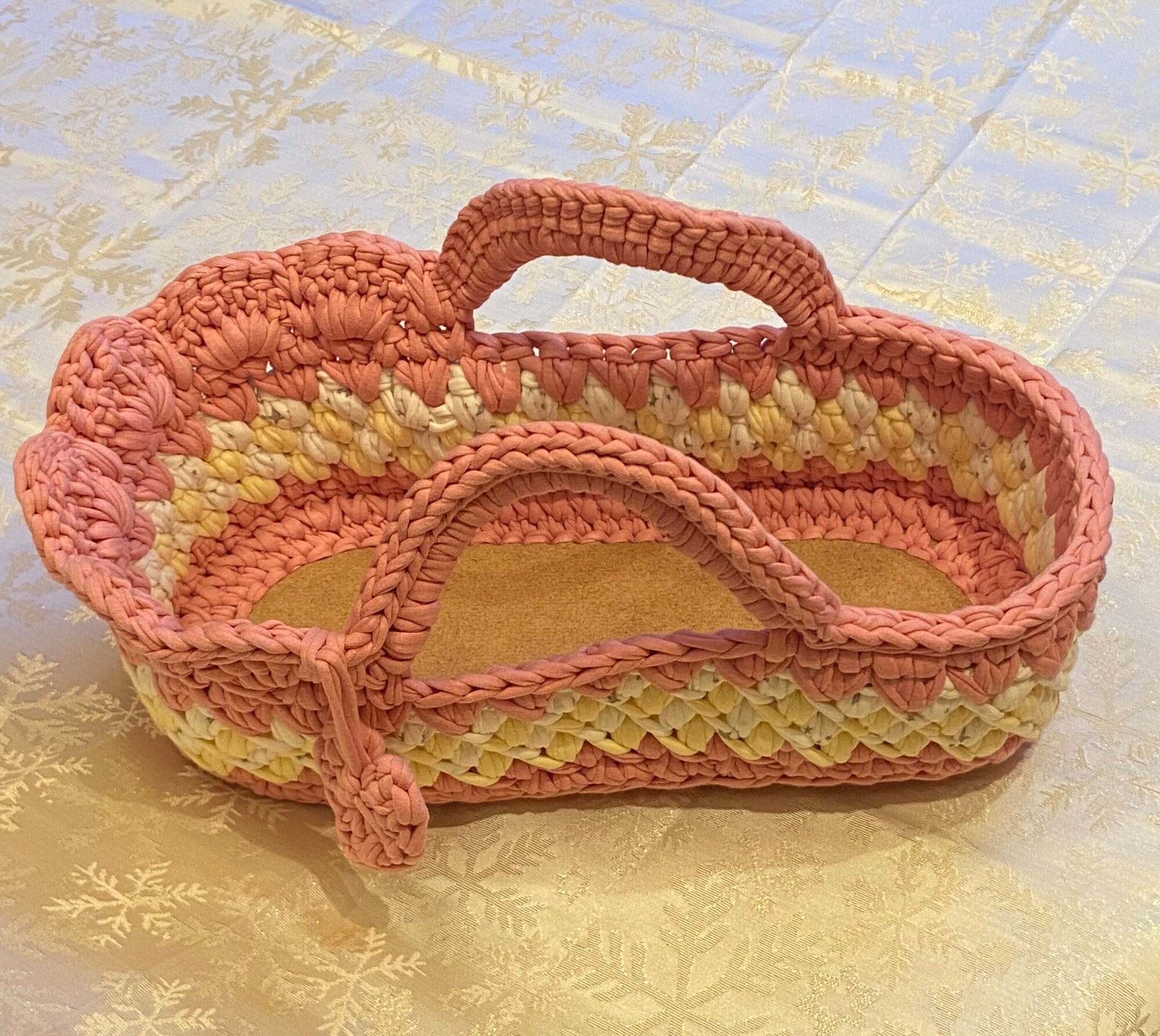 Люлька, переноска, кроватка для куклы вязаная Хлопок цвет Малави
