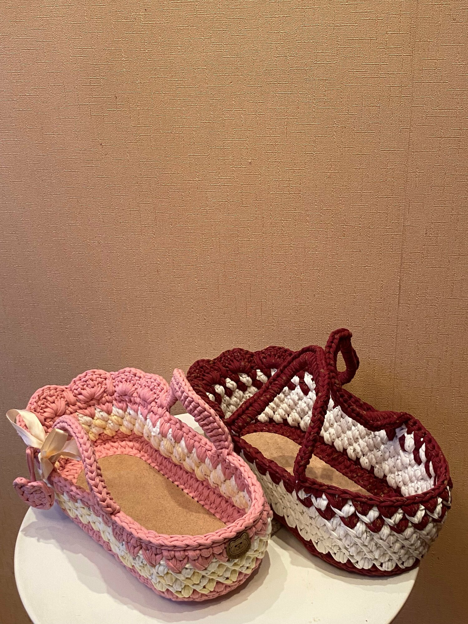 Люлька, переноска, кроватка для куклы вязаная Хлопок цвет малиновый йогурт