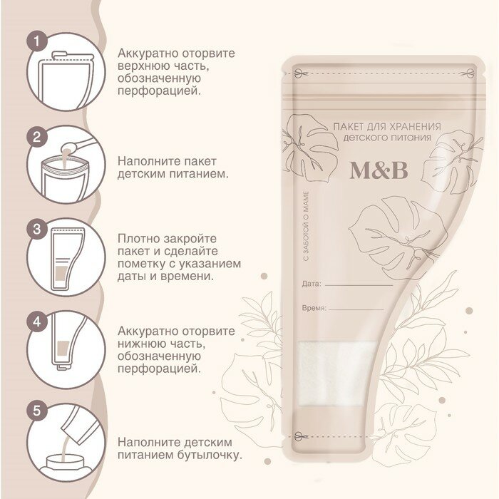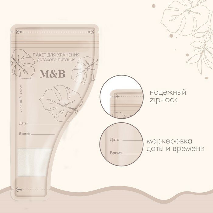 Пакеты для хранения и заморозки грудного молока M&B, 200 мл, набор 15 шт.