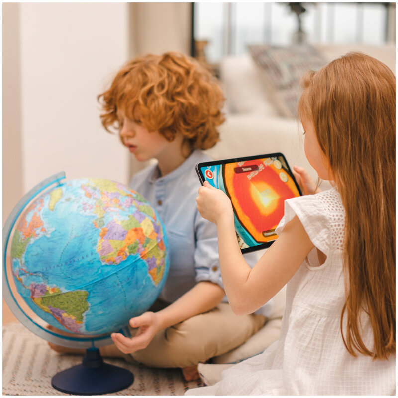 Глобус политический, d - 25 см, интерактивный с подсветкой, в комплекте очки виртуальной реальности (VR)