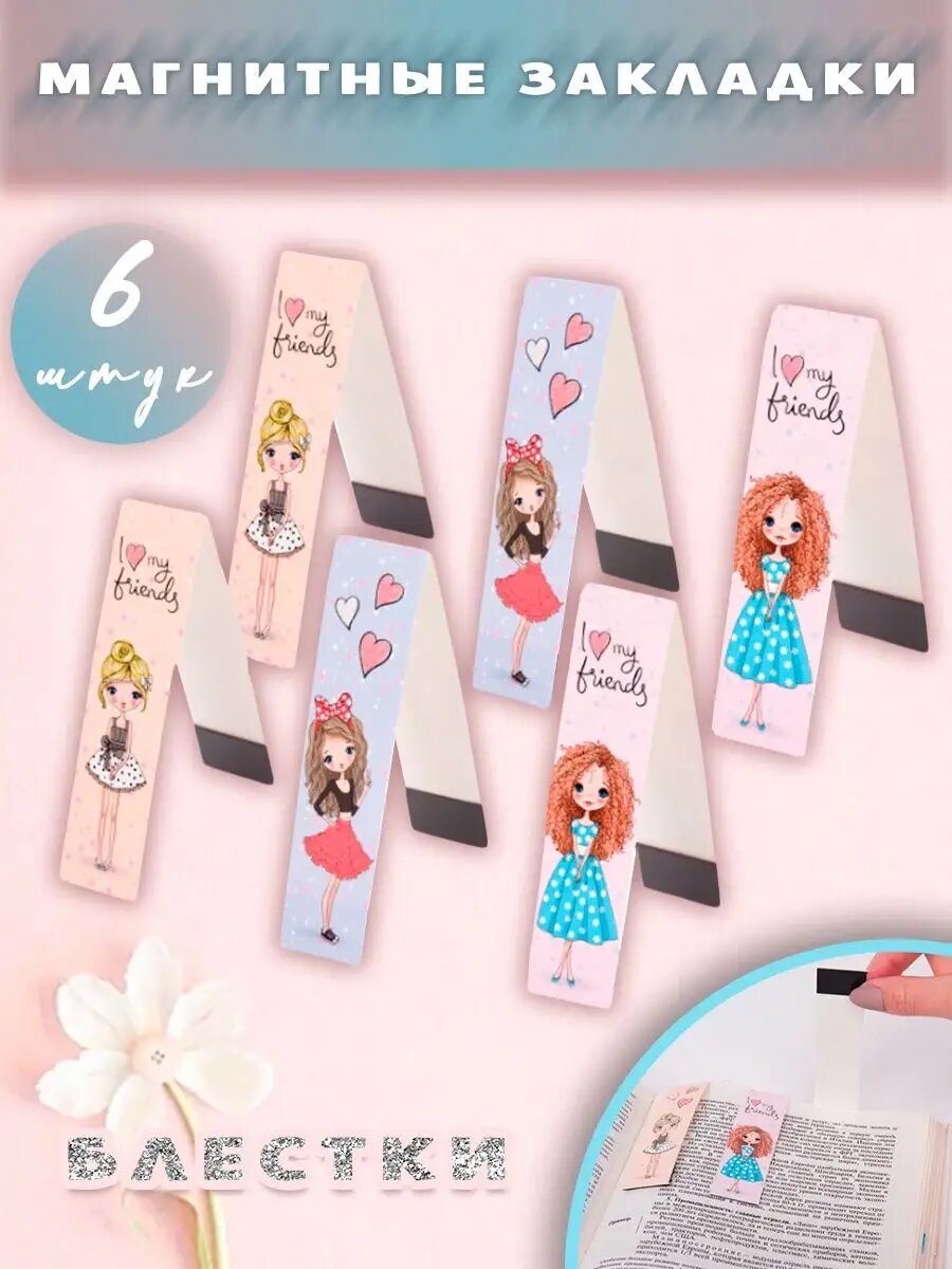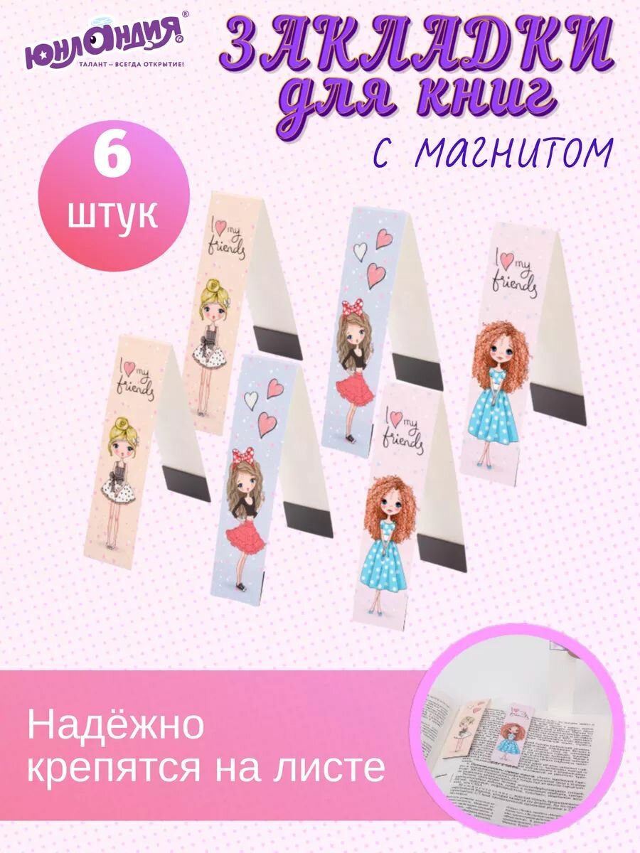 Магнитные закладки ЮНЛАНДИЯ "Fashion Girls", для книг, 19,6 см, 6 штук