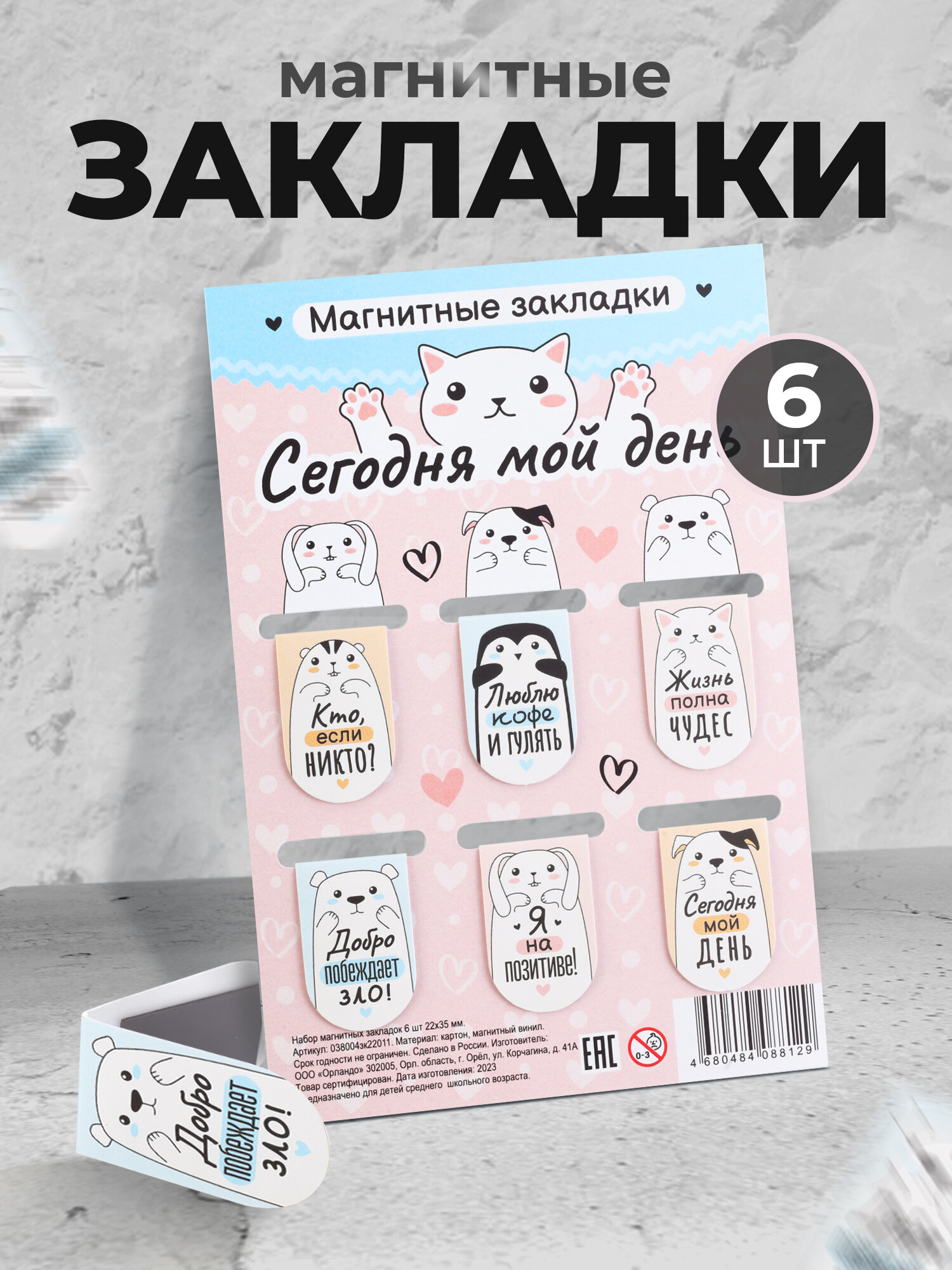 Купить Набор магнитных закладок 6 шт 22х35 мм "Сегодня мой день" / Закладка для книги
