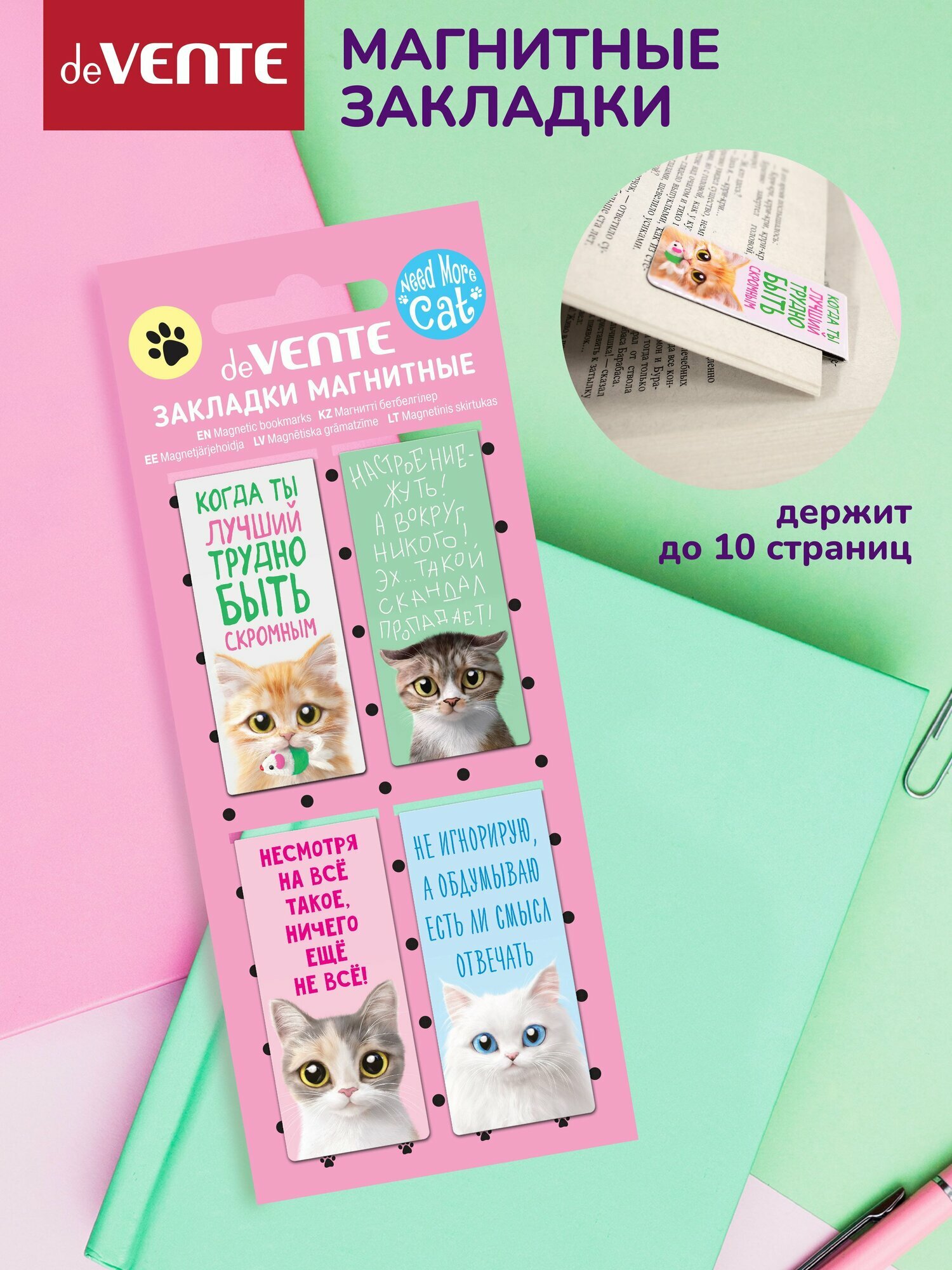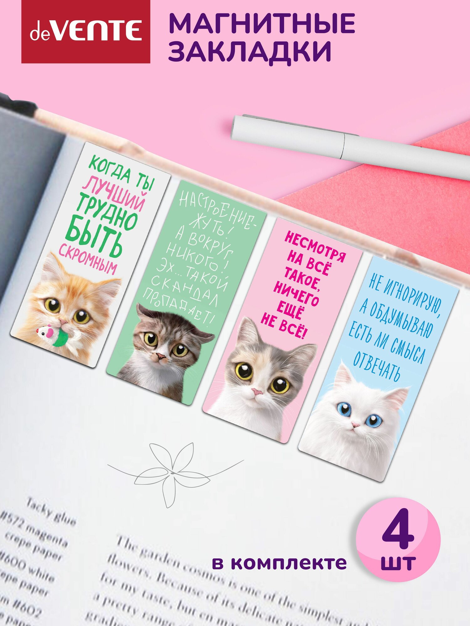 Купить deVENTE Закладка для книг магнитная 25*56.6мм "Need More Cat" 4шт/уп е/п DEVENTE 8065304