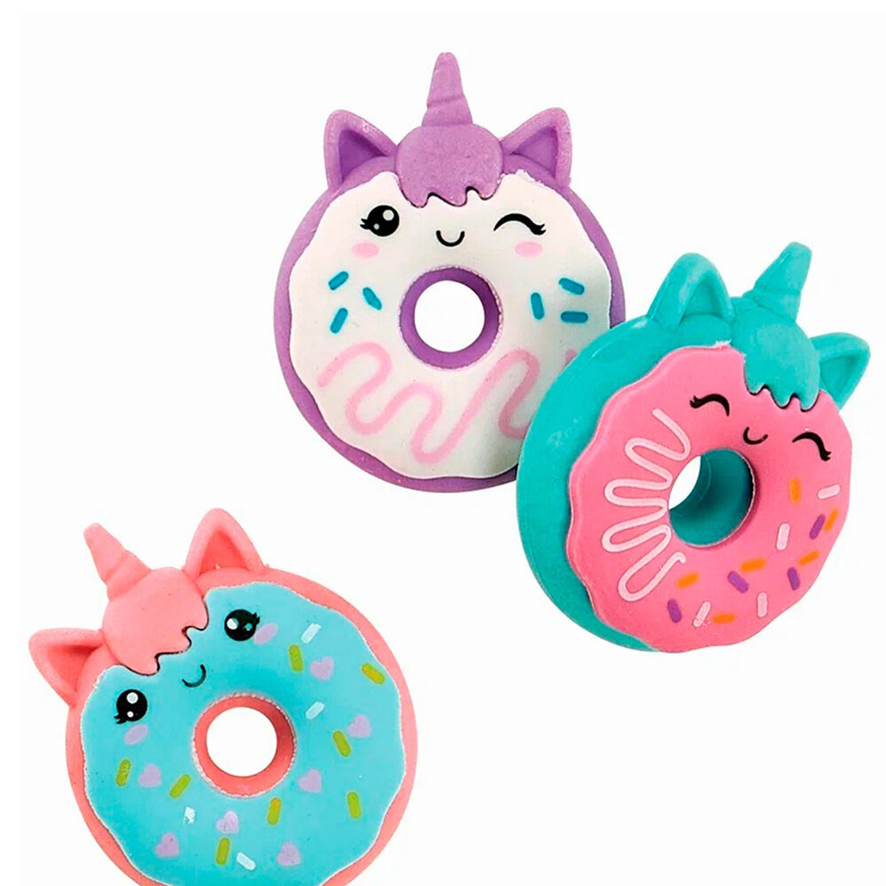 СохранитьНабор ластиков разборных 3 штуки, в виде пончиков-котиков, Qihao, фигурки из 2-х частей, школьные стерки для детей интересное: