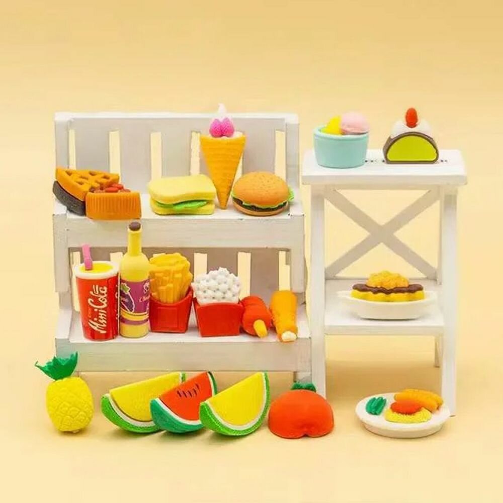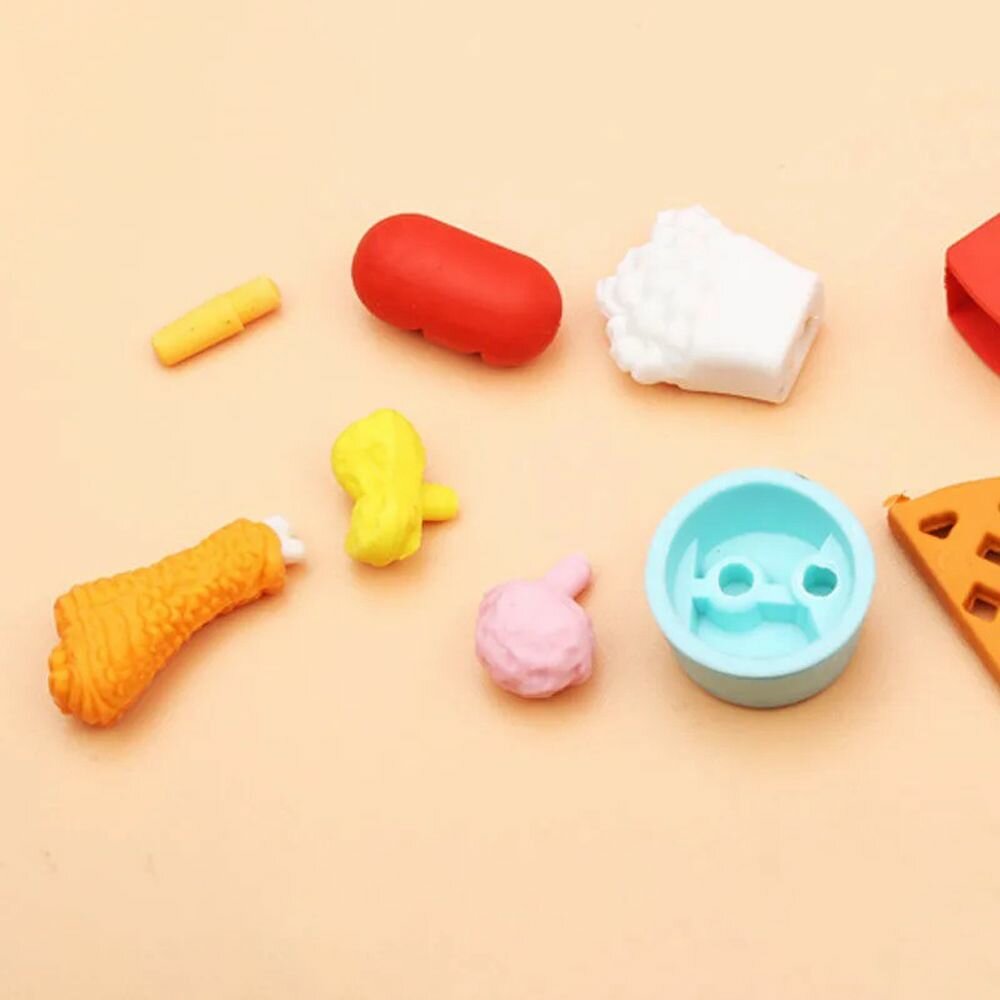 СохранитьНабор ластиков фигурных в виде еды, 4-6 шт, длина каждого 3-5 см, в контейнере, Qihao, мягкие цветные, школьные стерки для детей интересное: