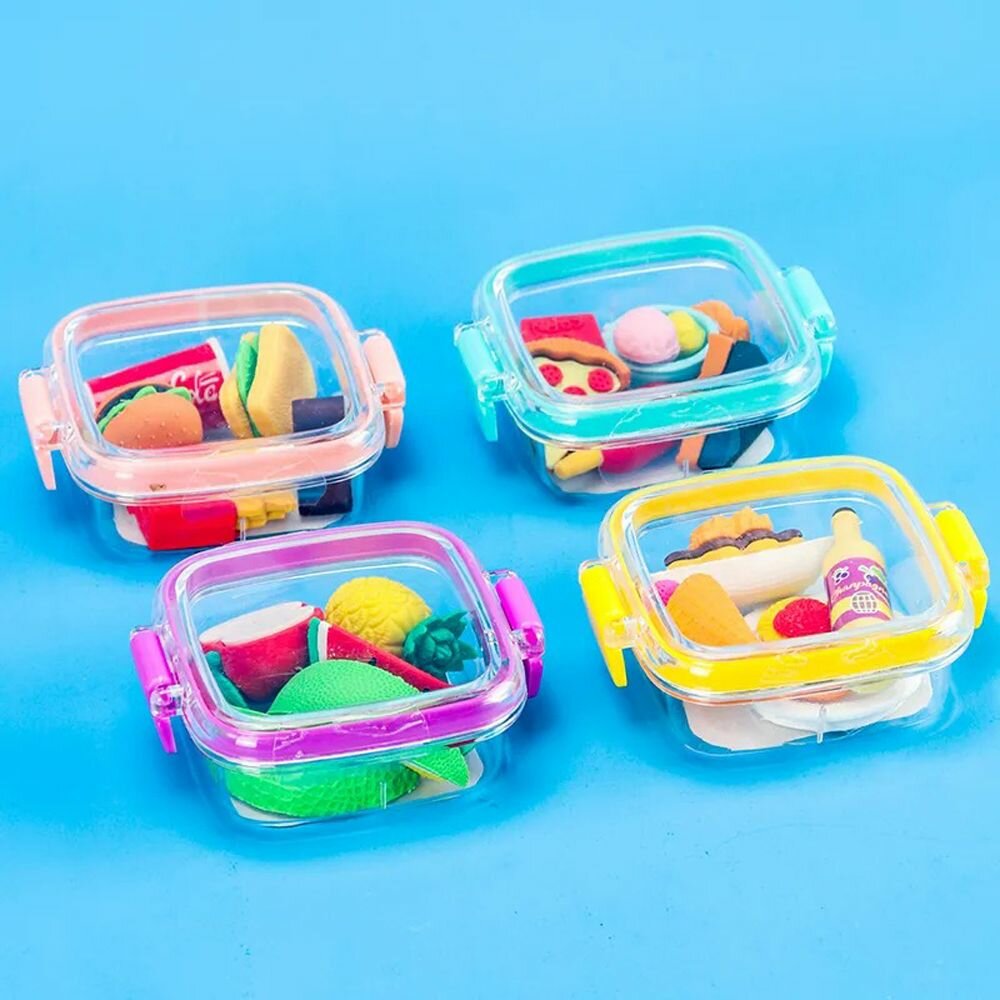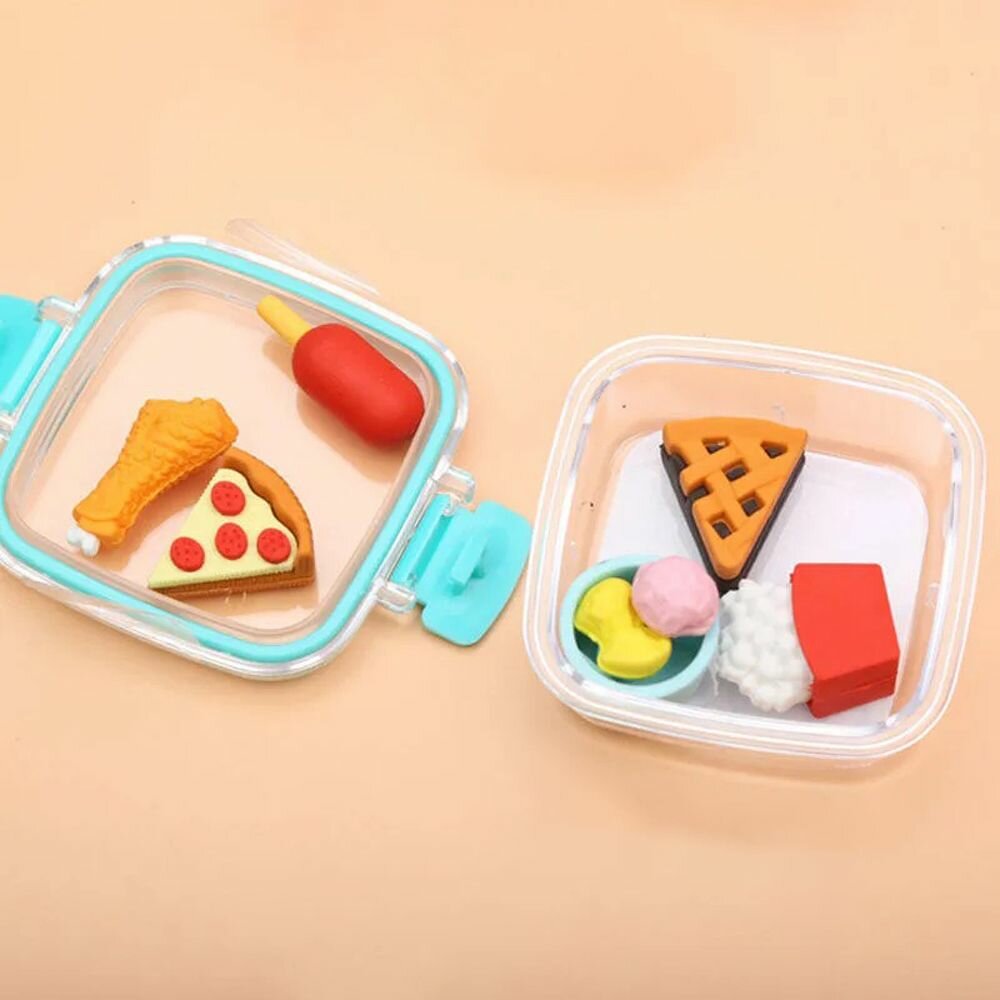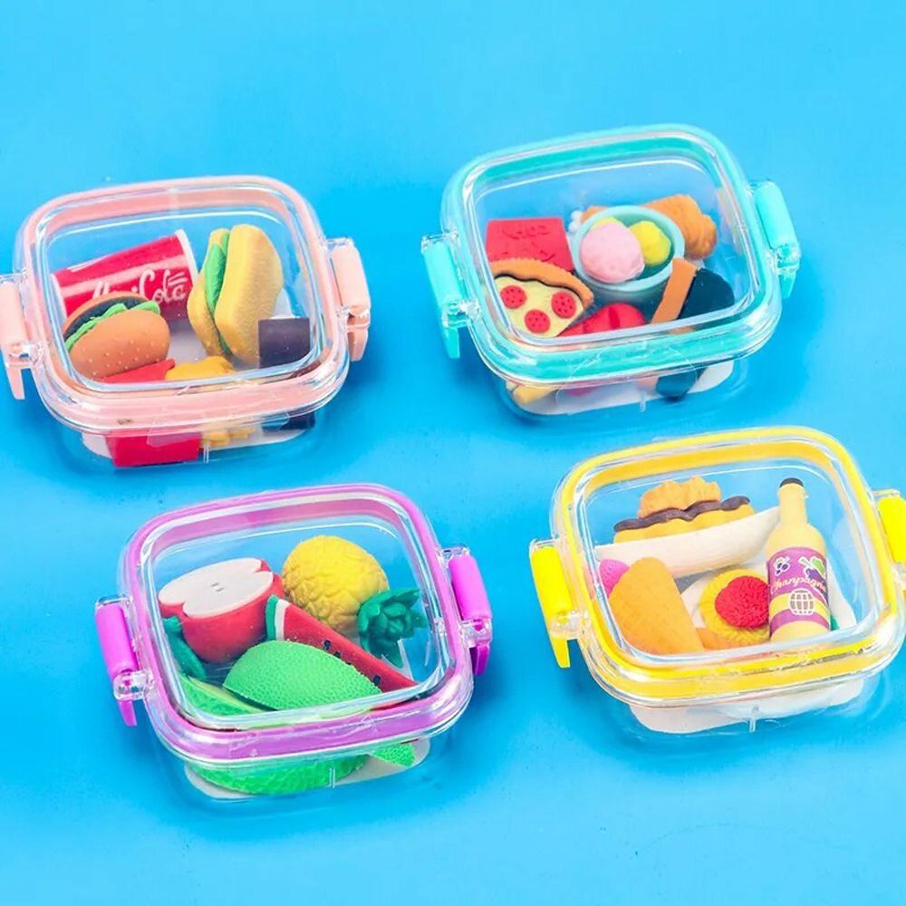 Купить Набор ластиков фигурных в виде еды, 4-6 шт, длина каждого 3-5 см, в контейнере, Qihao, мягкие цветные, школьные стерки для детей