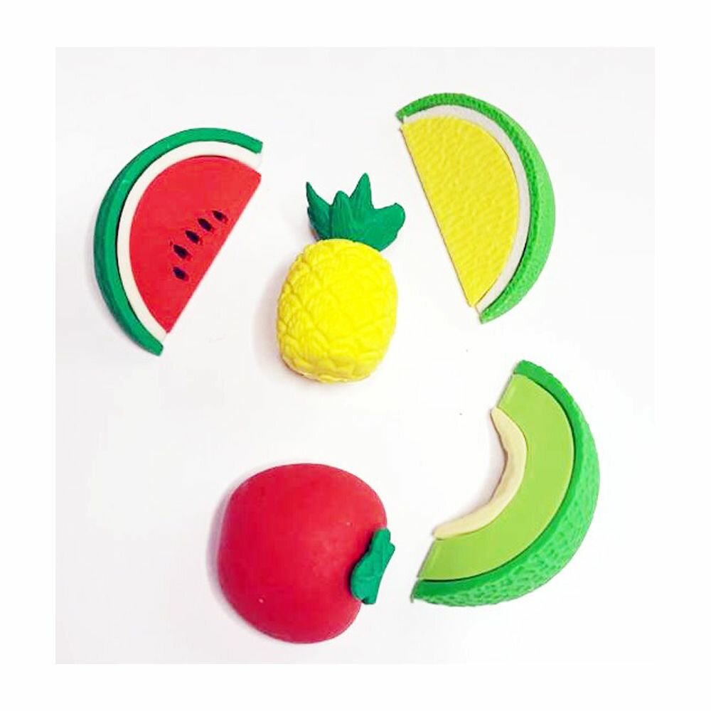 Набор ластиков фигурных 6 штук, в виде авокадо, Qihao, мягкие цветные, размер 4.5*3.3 см, школьные стерки для детей