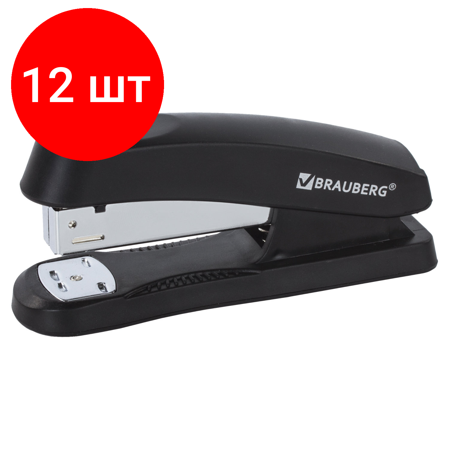 Купить Комплект 12 шт, Степлер №24/6, 26/6 BRAUBERG "Standard+", до 30 листов, черный, 228608