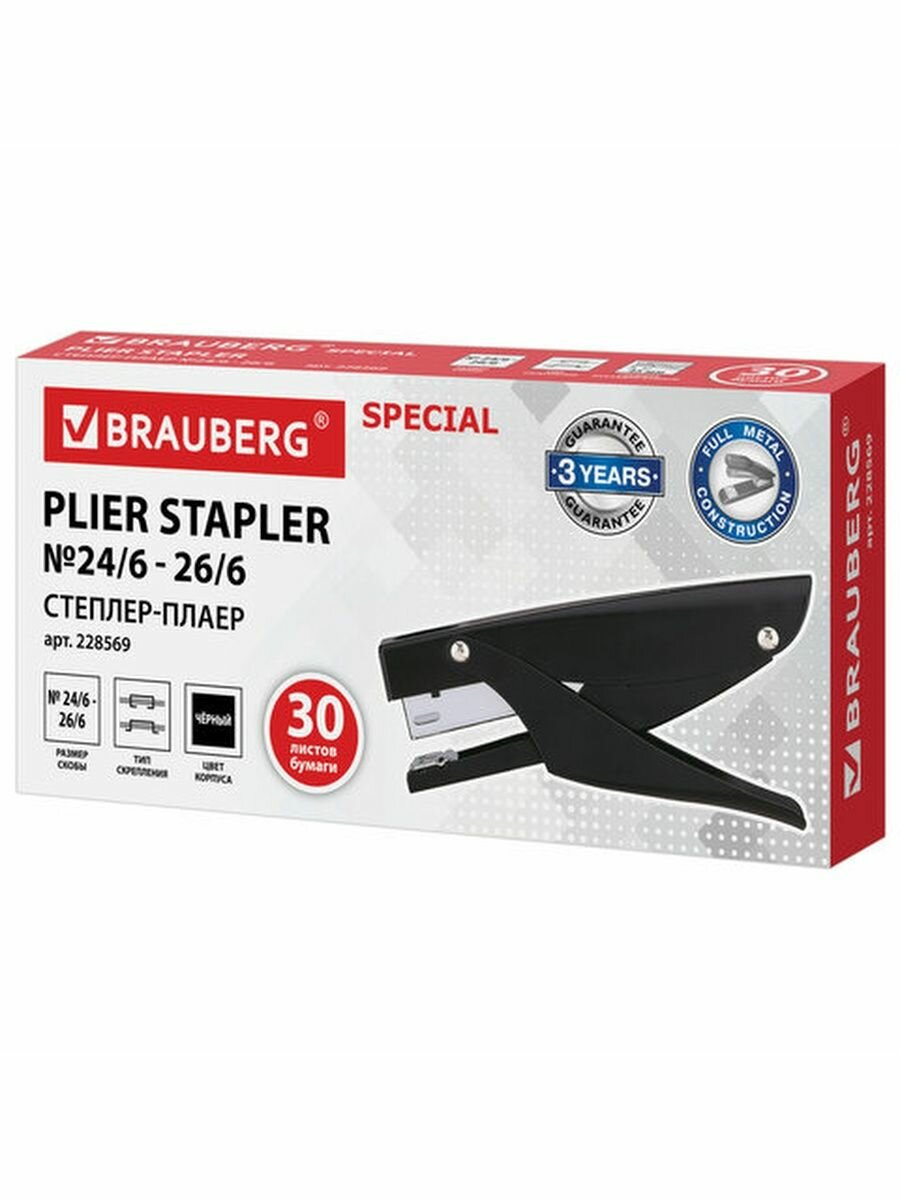Купить Степлер-плаер BRAUBERG "Extra Easy Press", №24/6, до 30 листов, металлический корпус,черный,228569