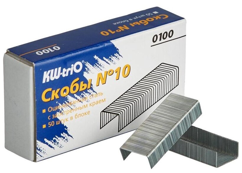Скобы для степлера №10, 1000 штук, KW-trio, до 20 листов, 0100, -0100