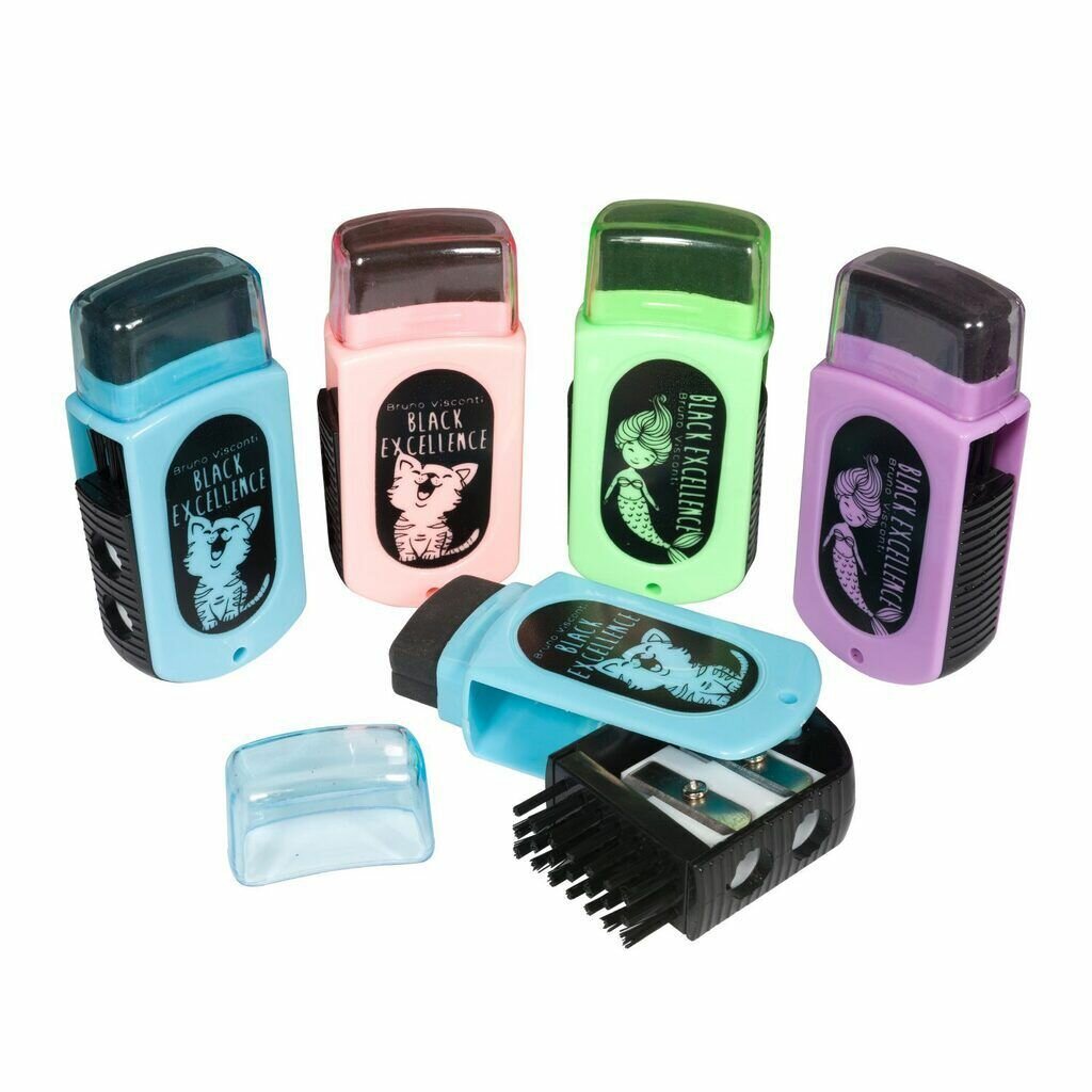 Купить Точилка пласт. с контейнером 2 отв. Black excellence, ластик и щетка