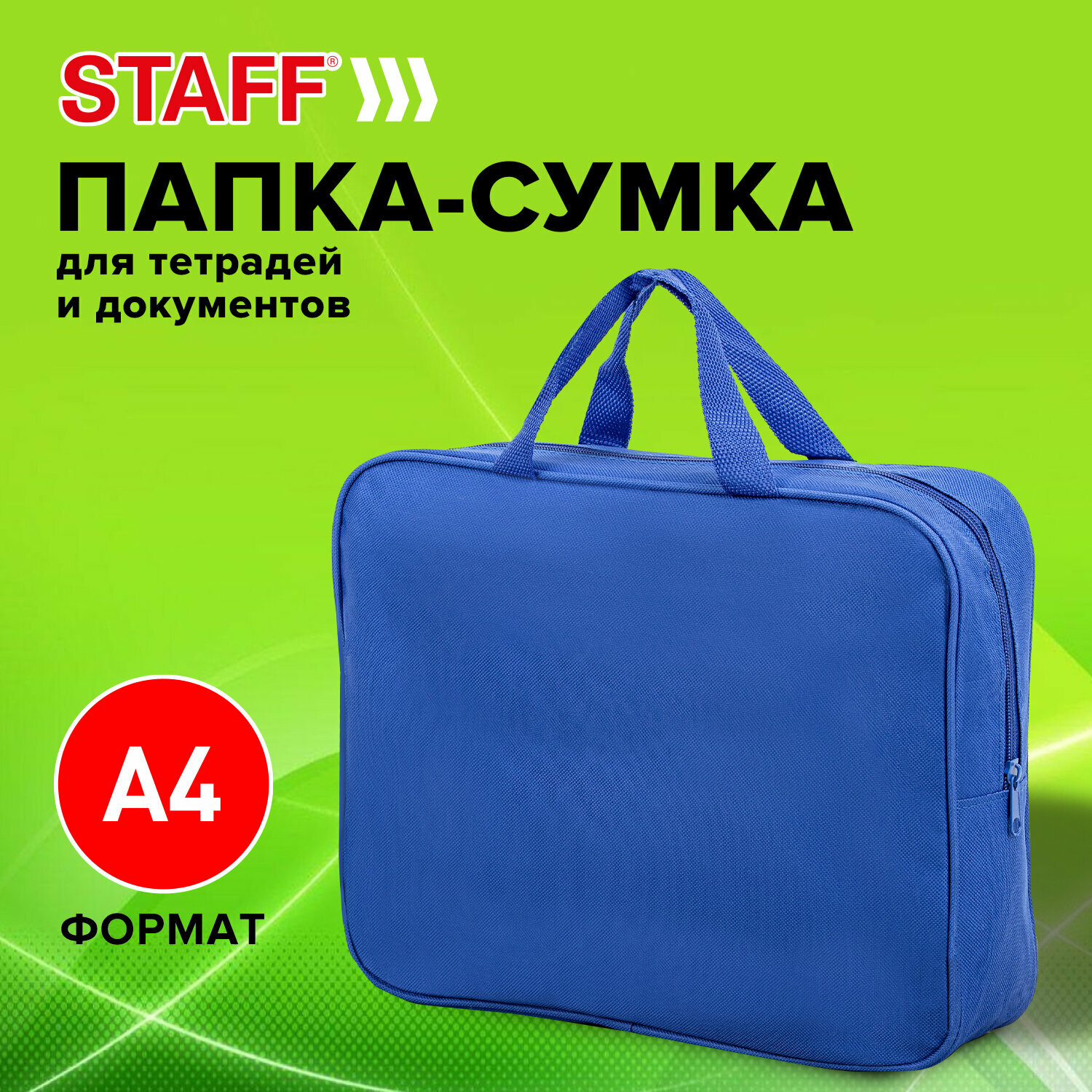 Купить Папка-сумка, портфель для документов, бумаг и школы канцелярская с ручками на молнии Staff Everyday, А4, ширина 80 мм, полиэстер, синяя