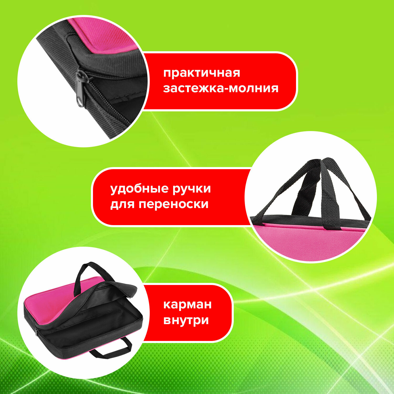 СохранитьПапка на молнии с ручками STAFF EVERYDAY, А4, ширина 80 мм, полиэстер, розовая, 270743 (арт. 270743) интересное: