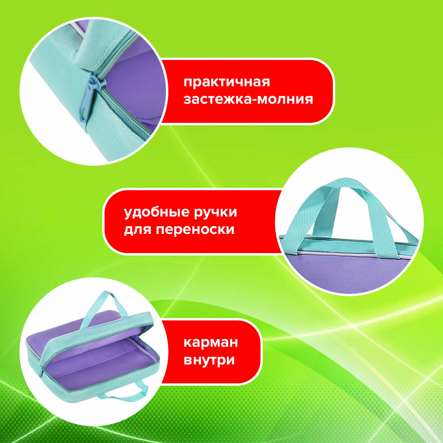 Папка на молнии с ручками STAFF EVERYDAY, А4, ширина 80 мм, полиэстер, зеленая, 270742, в комплекте 1шт