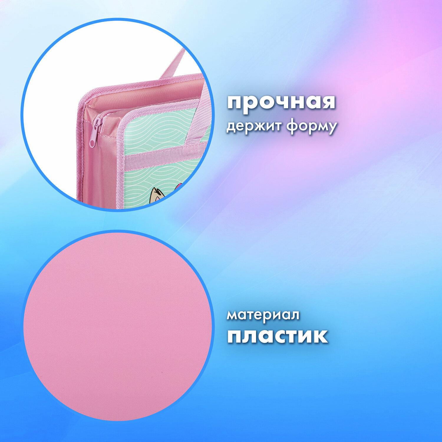 Папка-сумка, портфель для документов, бумаг и школы канцелярская с ручками на молнии Brauberg А4, 1 отделение, пластик, ширина 80 мм, Dream cat