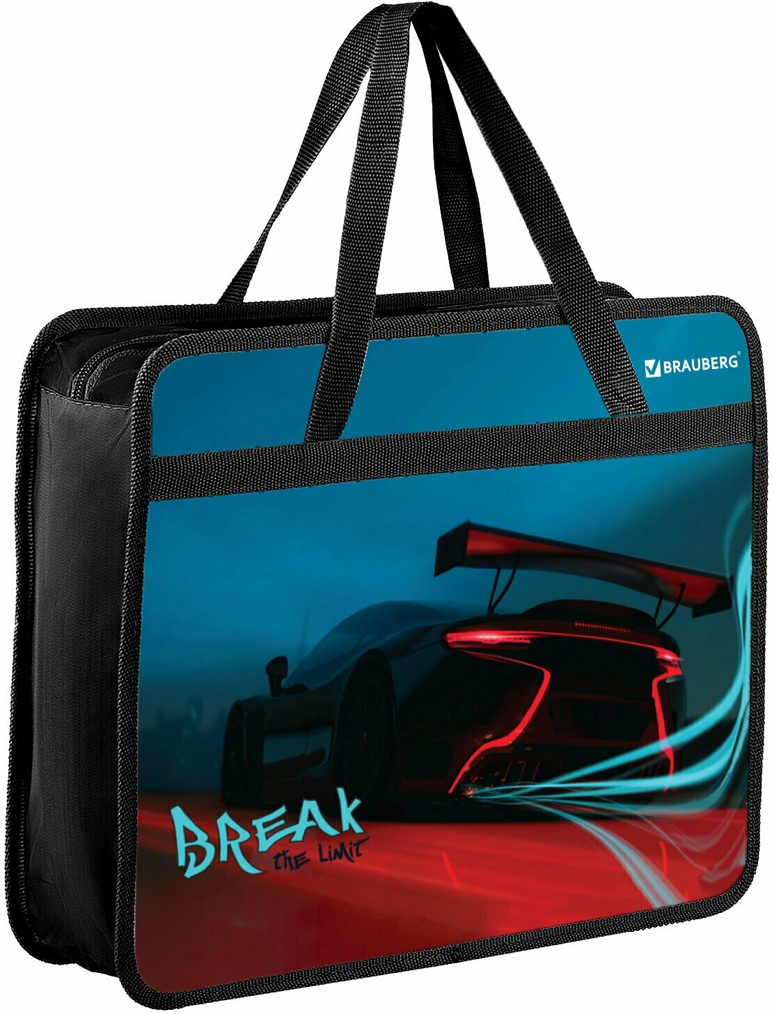 Папка на молнии с ручками Brauberg А4, 1 отделение, пластик, 80 мм, Night driver, 272169
