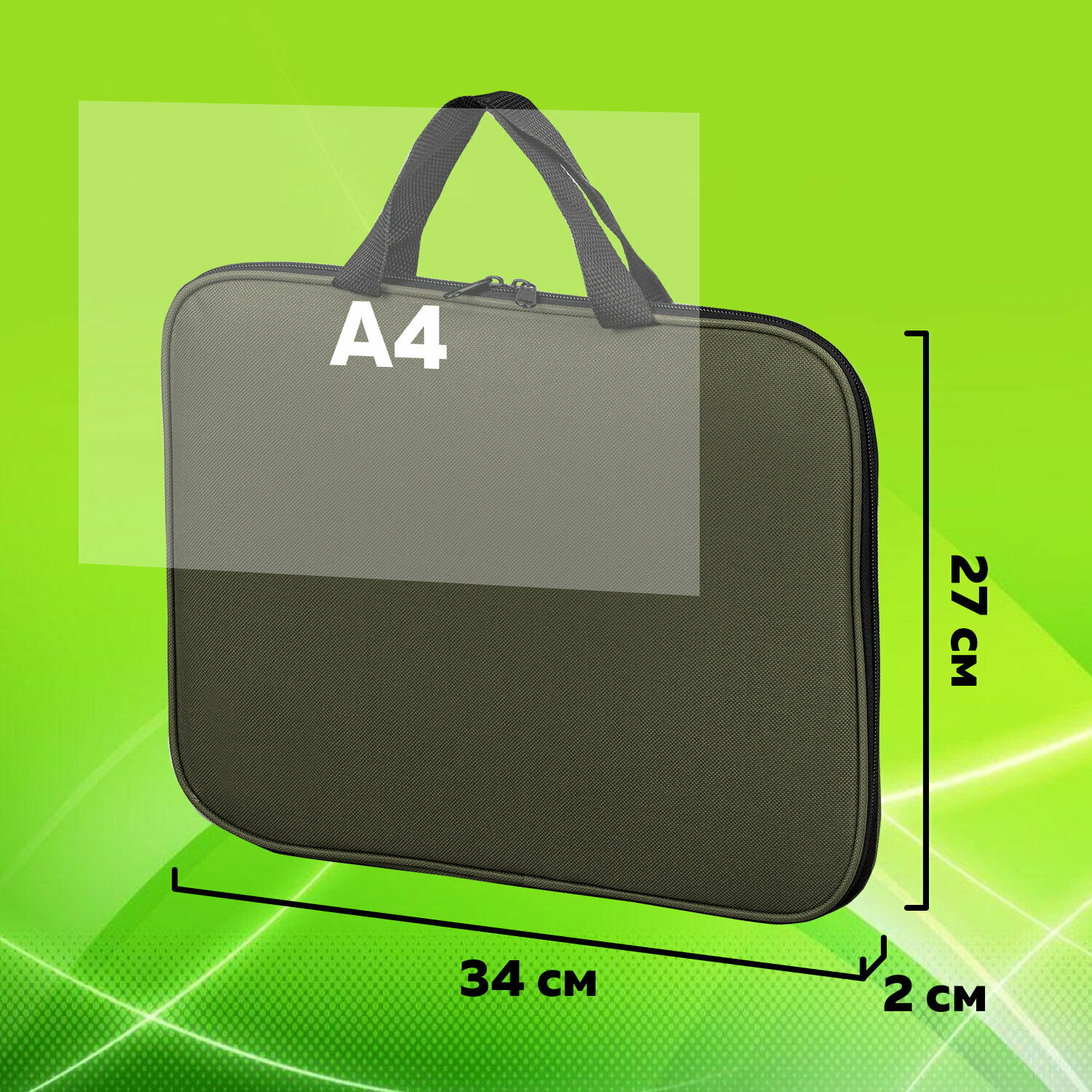 Папка на молнии с ручками STAFF EVERYDAY, А4, полиэстер, хаки, 270737