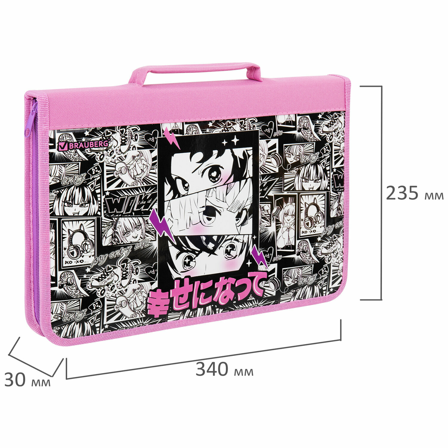 Папка для тетрадей, труда, рисования и изо А4 для девочек на молнии с ручкой, канцелярия для школы аниме, органайзер 1 отд, Brauberg Anime, 272216