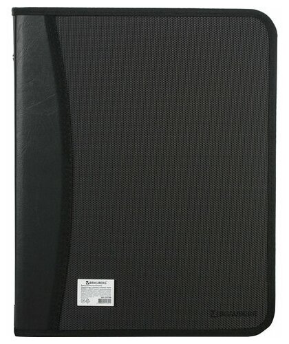 Папка Brauberg , пластик, 2 отделения, 4 кармана, черная на молнии