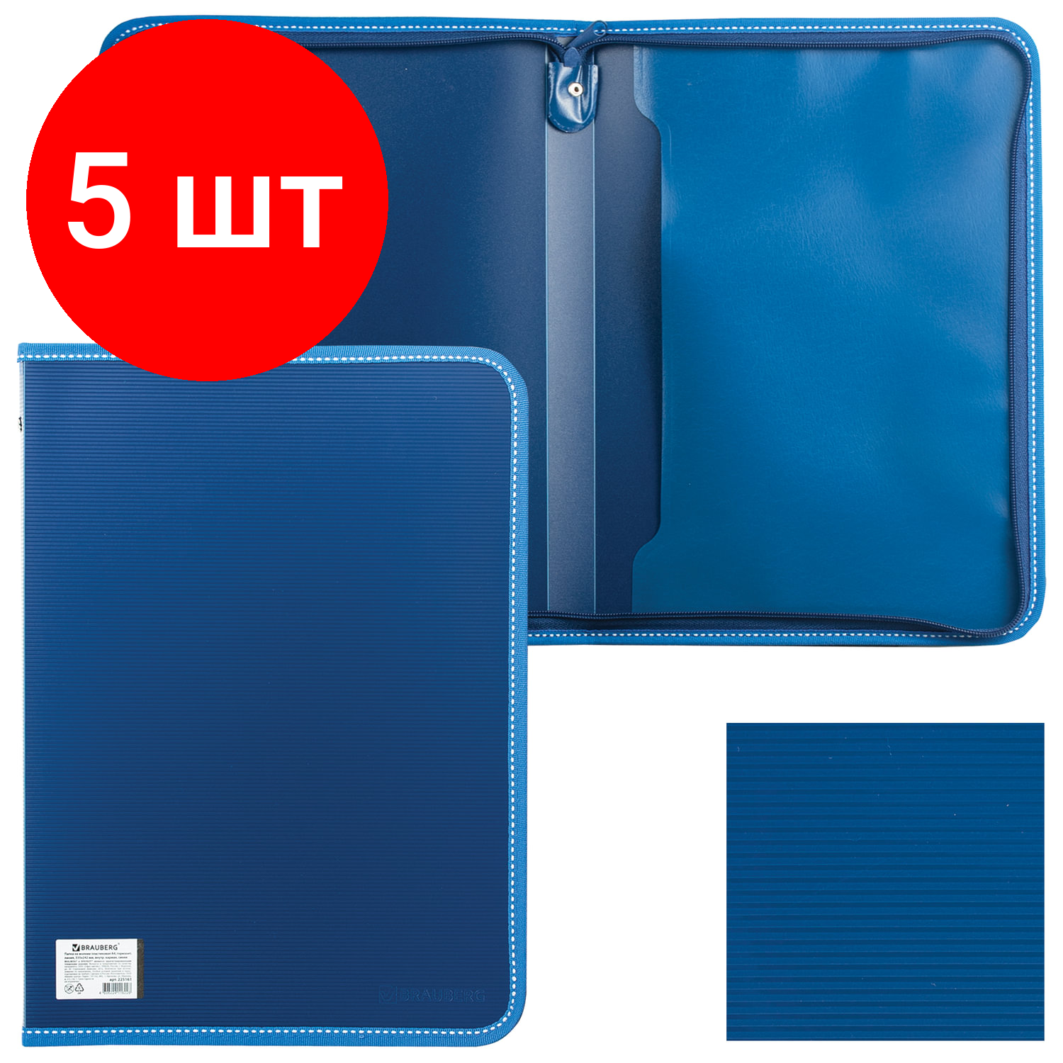 Купить Комплект 5 шт, Папка на молнии пластиковая BRAUBERG "Contract", А4, 335х242 мм, внутренний карман, синяя, 225161