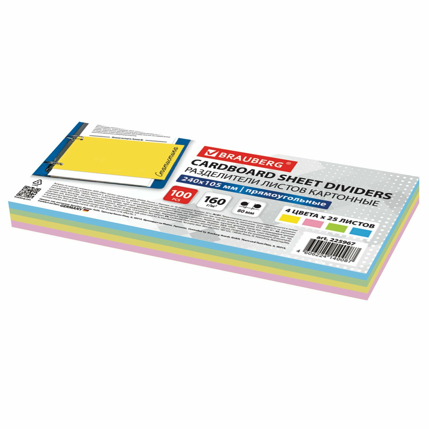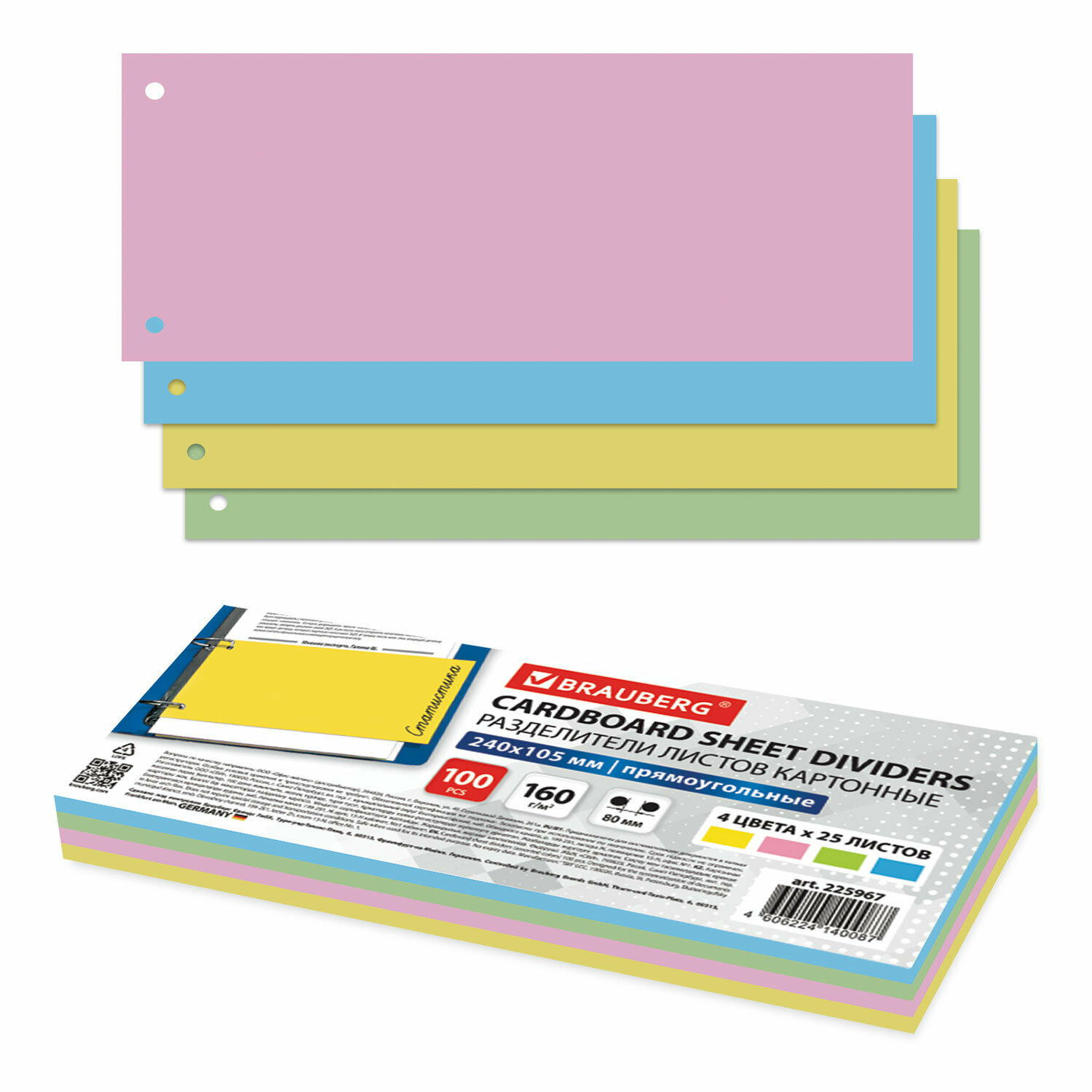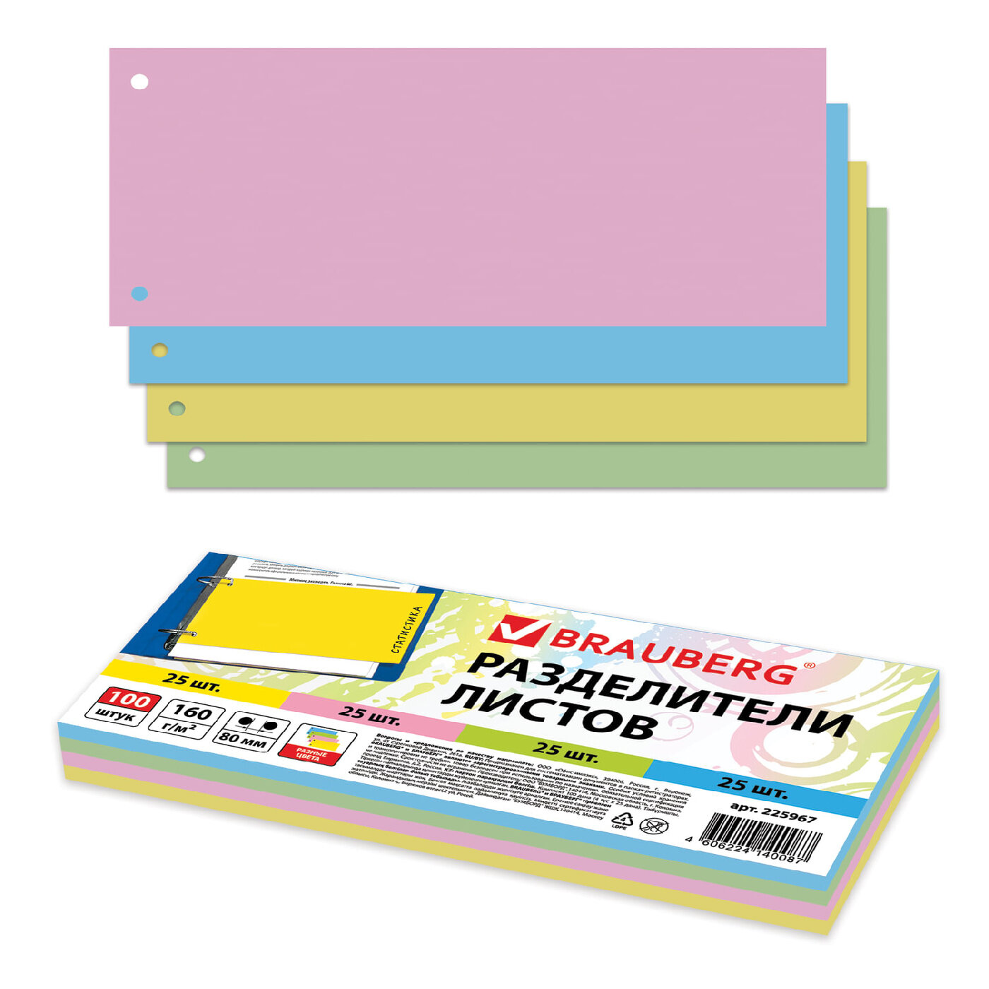 Разделители листов (полосы 240х105мм) картонные, комплект 100 штук, ассорти, BRAUBERG, 225967